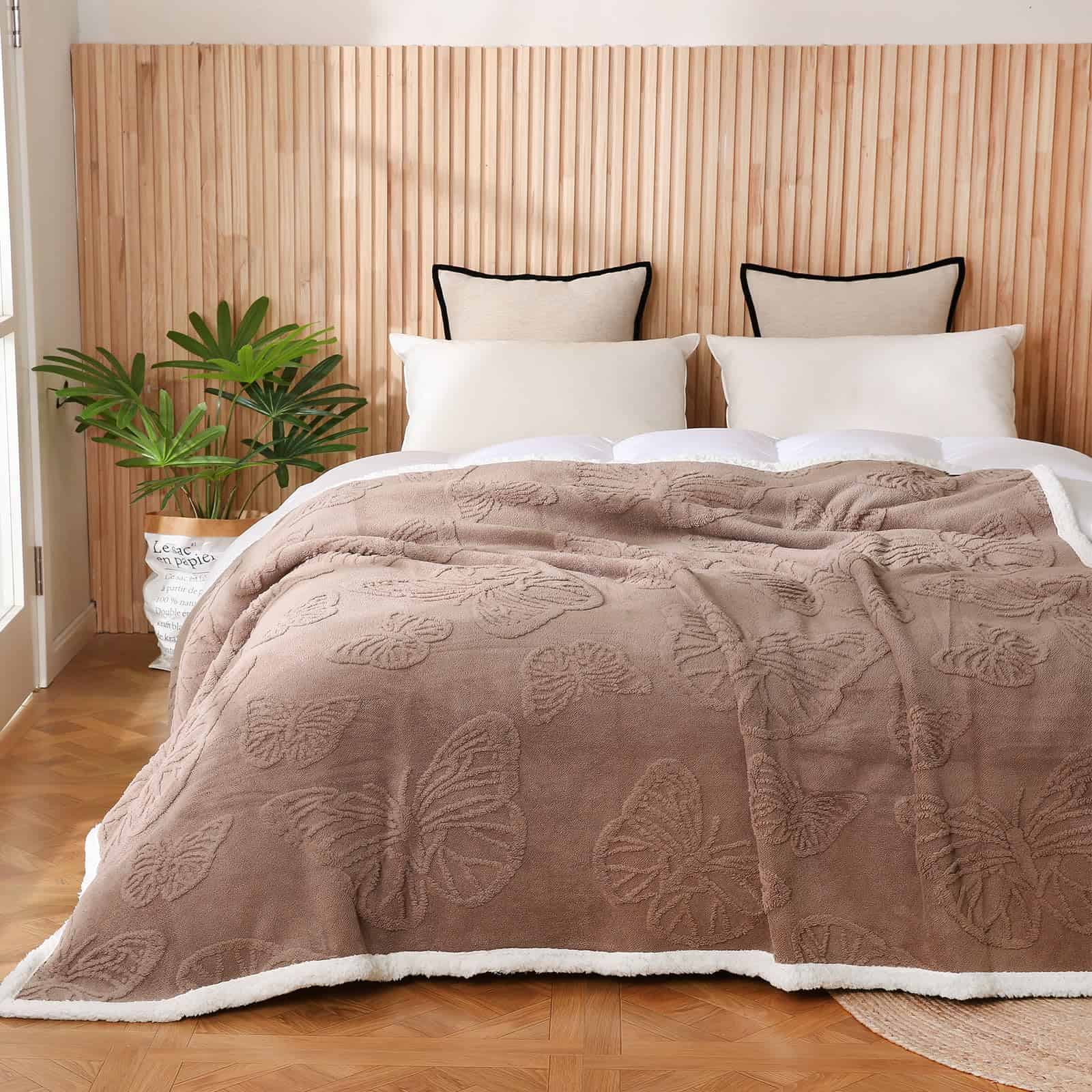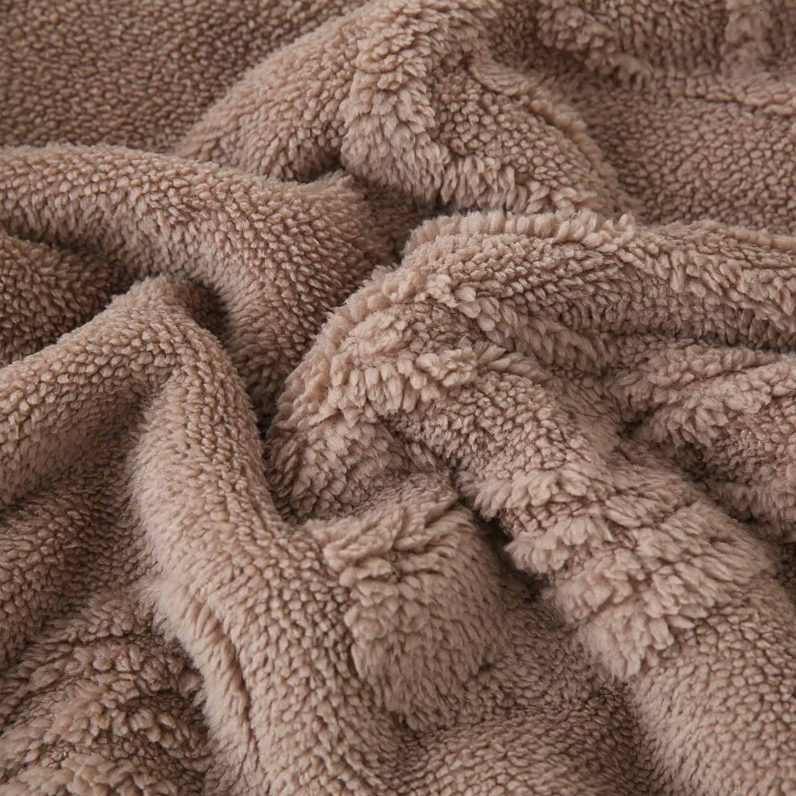 1. SUPER SUAVE Y CÁLIDA: La Manta de Sherpa Fleece está hecha de 240GSM de felpa jacquard en un lado y 220GSM de sherpa súper suave en el otro lado, esta manta de doble cara de buena calidad es peluda, esponjosa y ultra acogedora para un confort elegante durante todo el año.