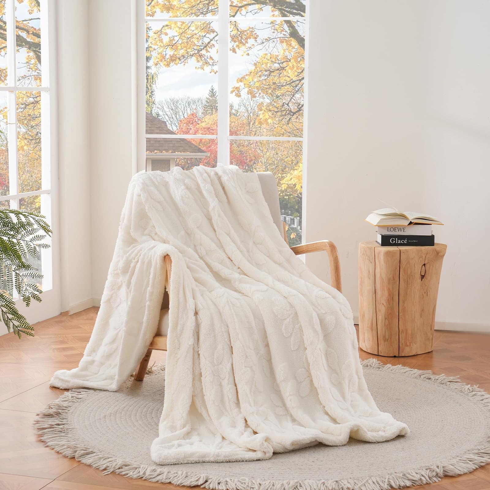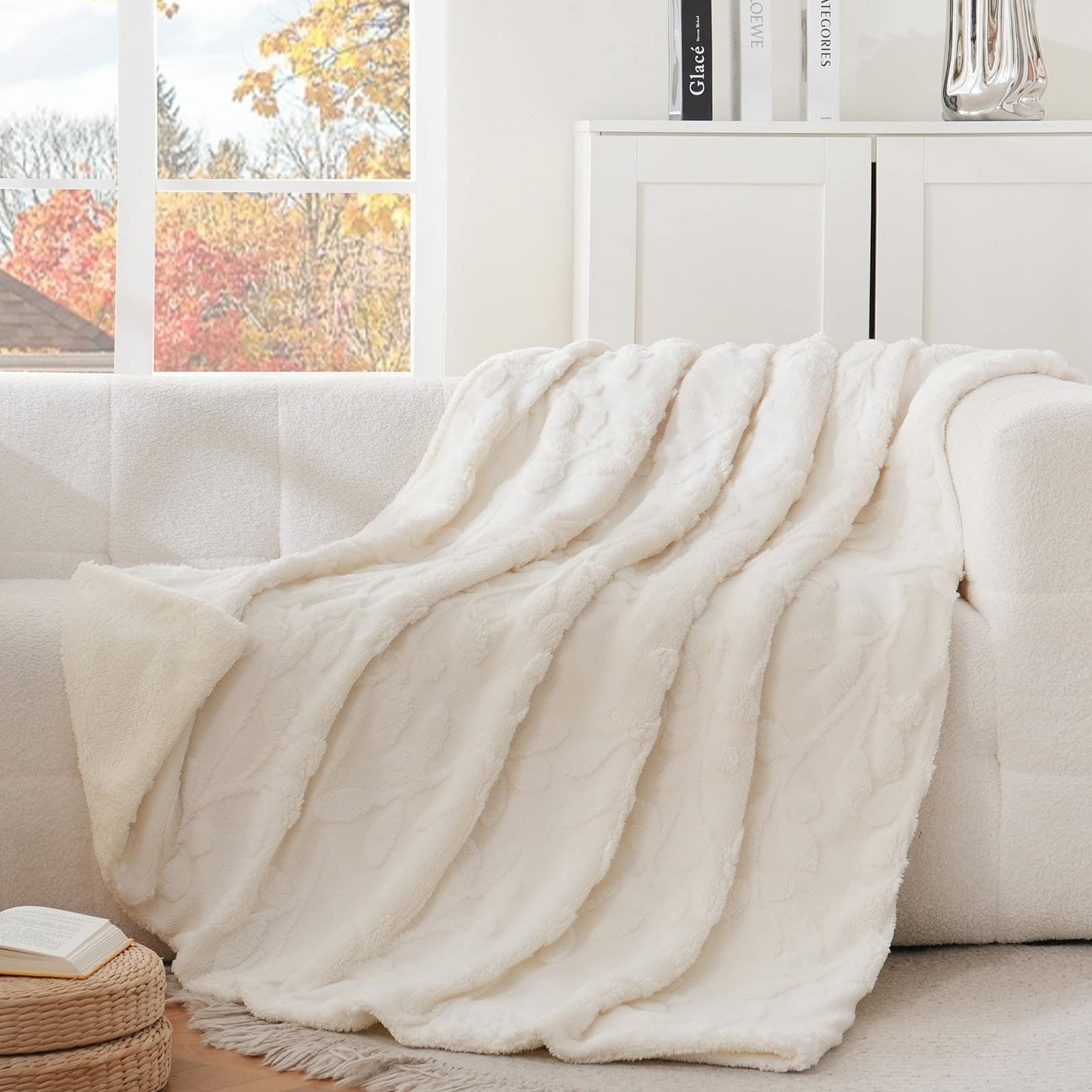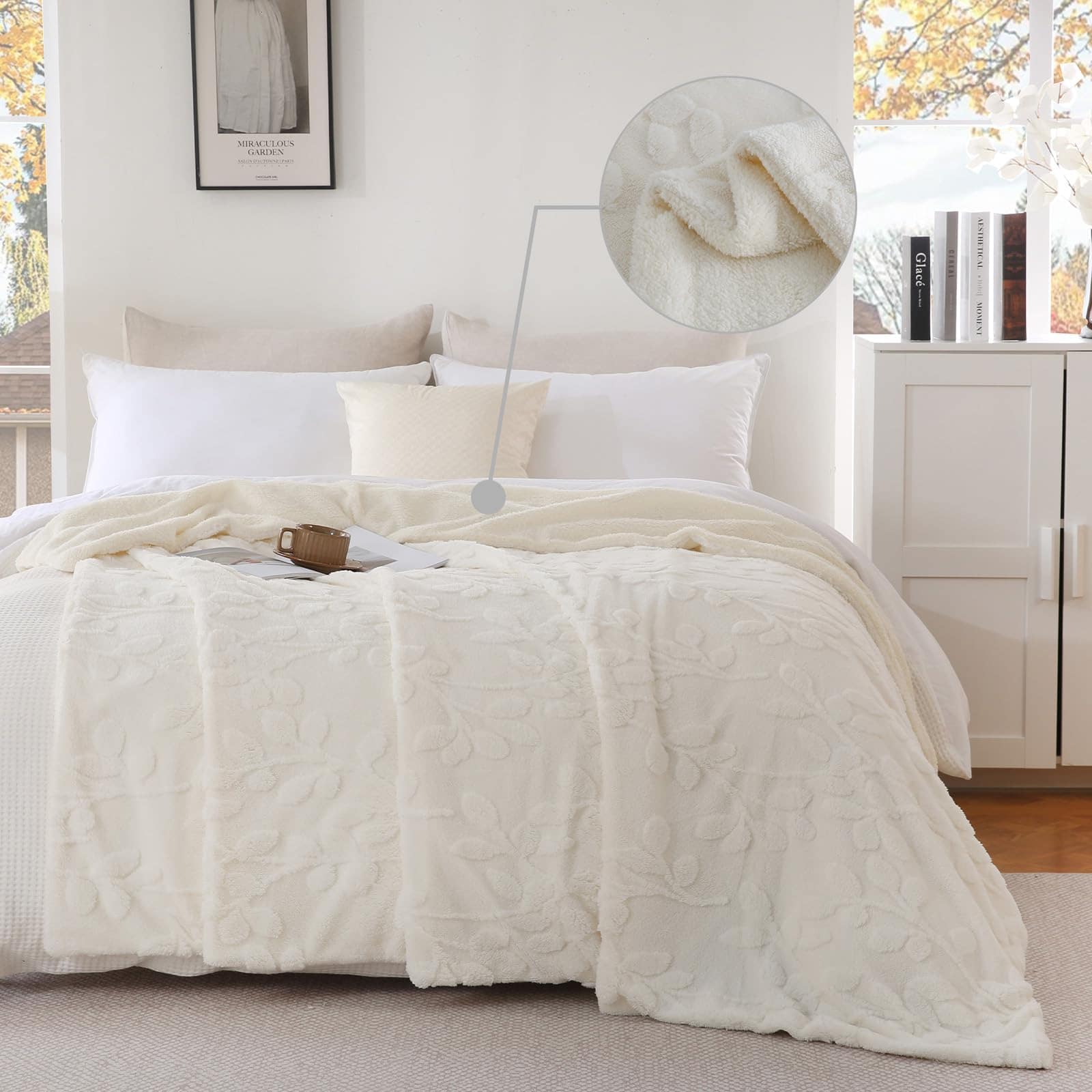 1. SUPER SUAVE Y CÁLIDA: La Manta de Felpa Sherpa está hecha de felpa jacquard de 240GSM en un lado y felpa sherpa extra suave de 220GSM en el lado opuesto, esta manta de doble cara de buena calidad es peluda, esponjosa, y ultra acogedora para una comodidad elegante durante todo el año.