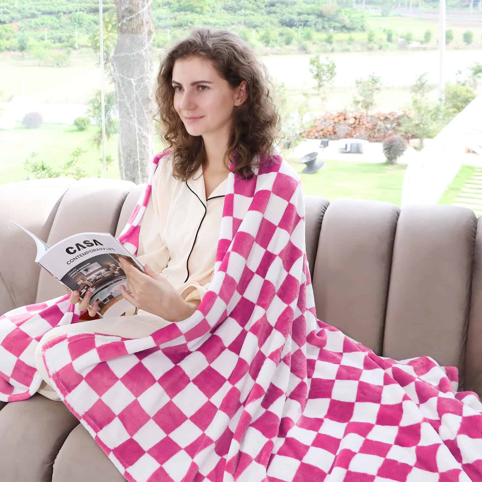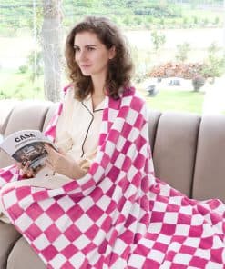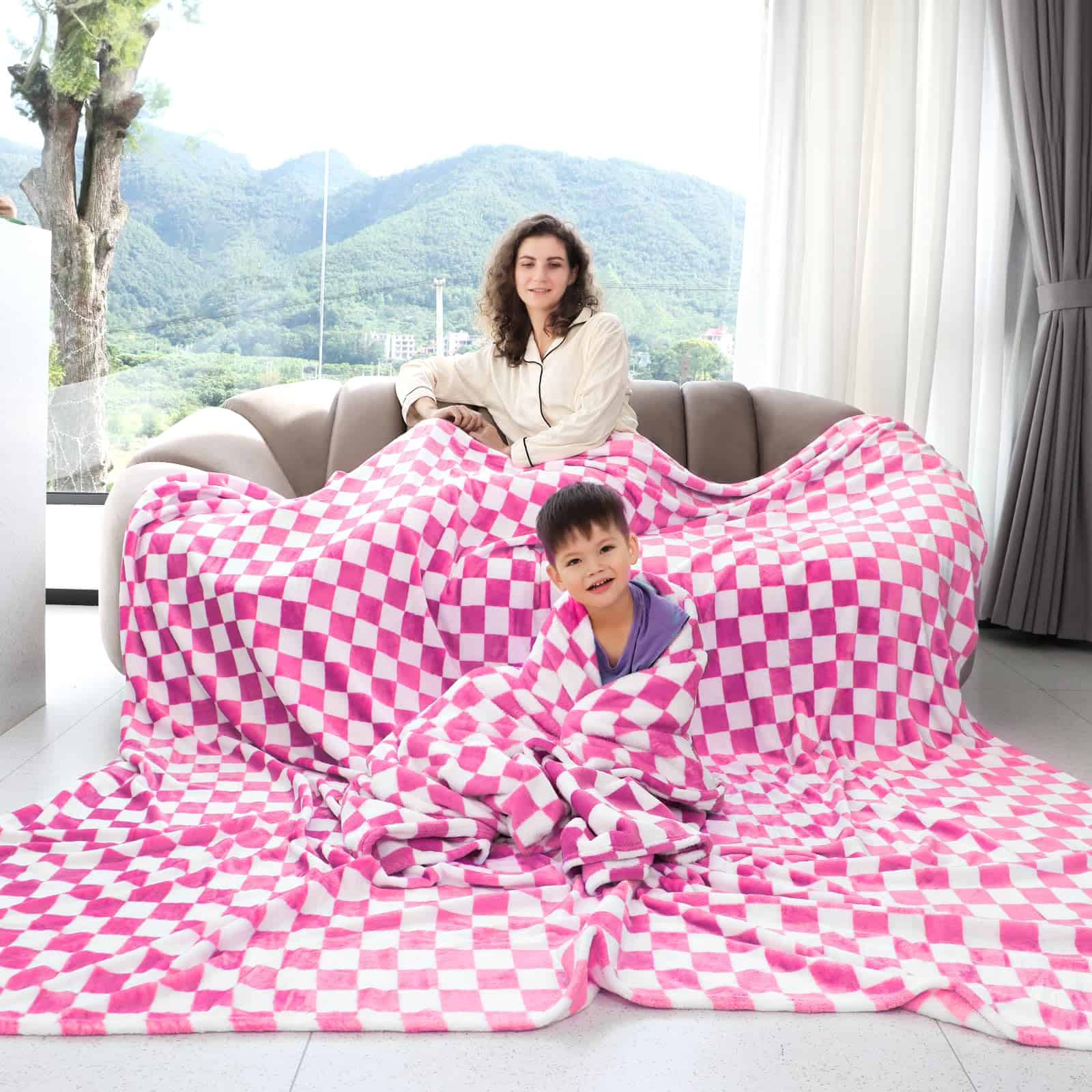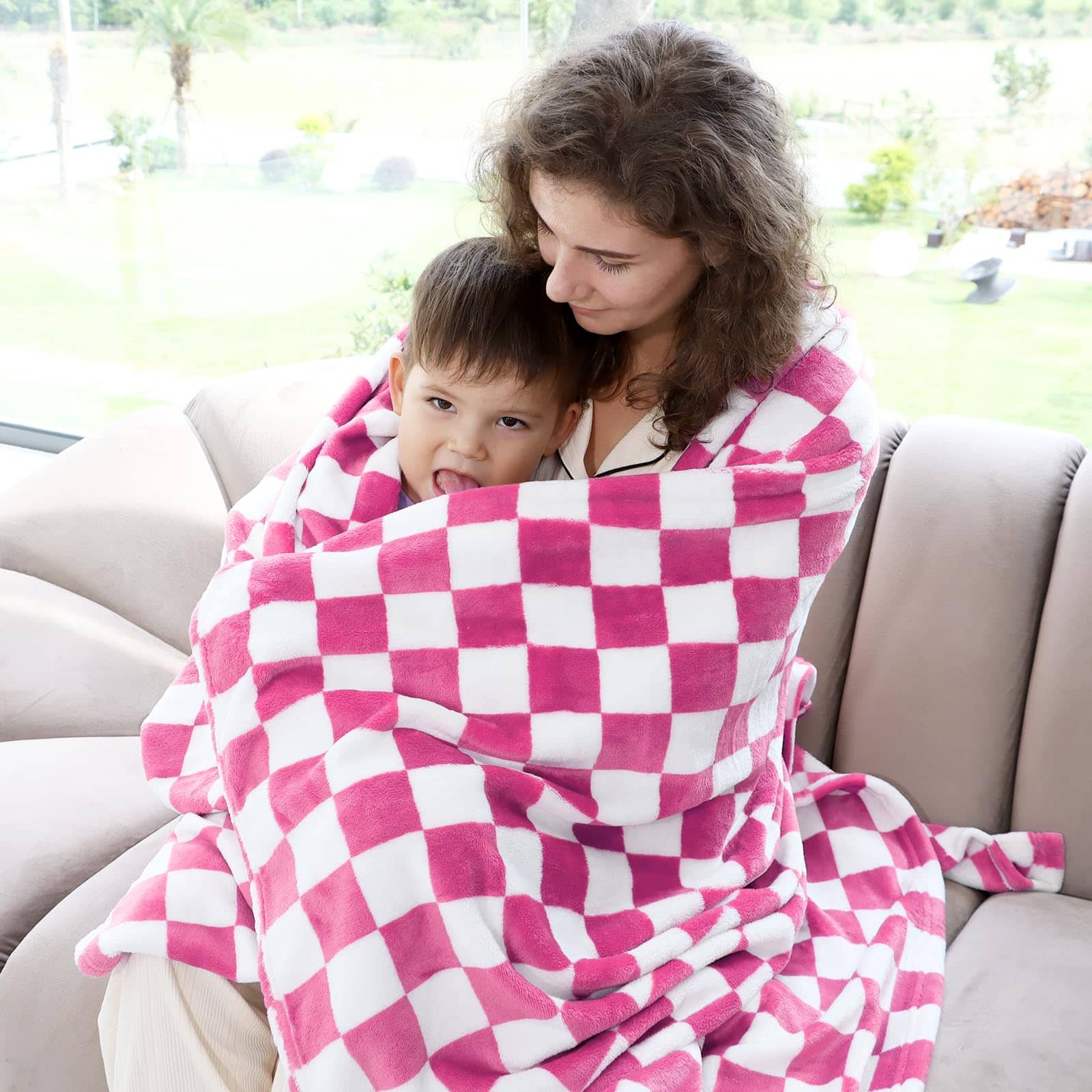 Manta Grande de Cuadros Rosa Reina de Tamaño Suave Mantas