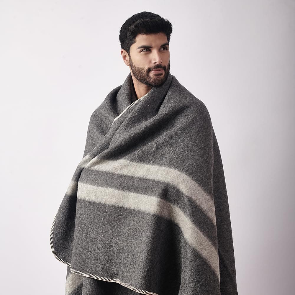 Manta Gruesa de Lana de Alpaca – Manta de Lana -Gris Oscuro