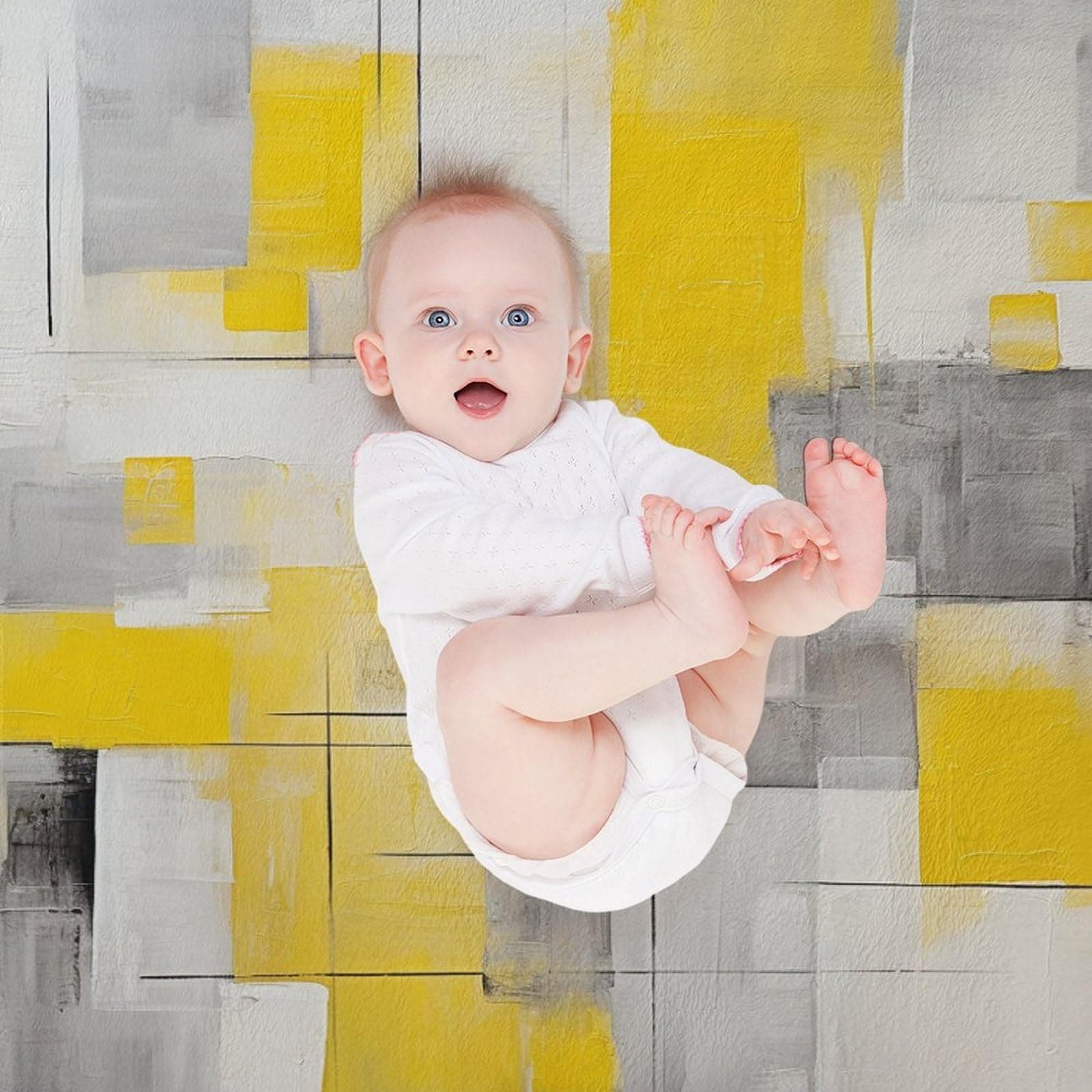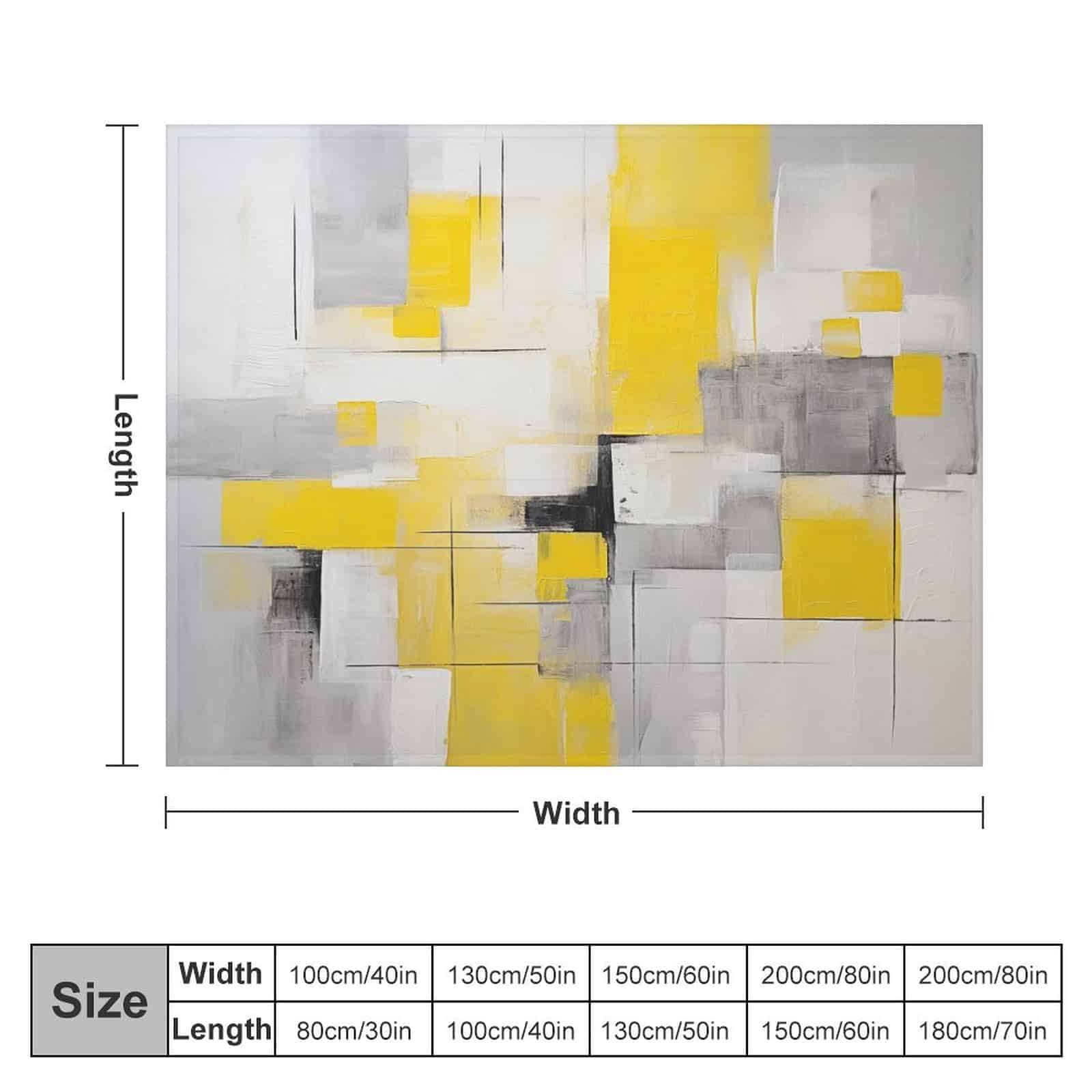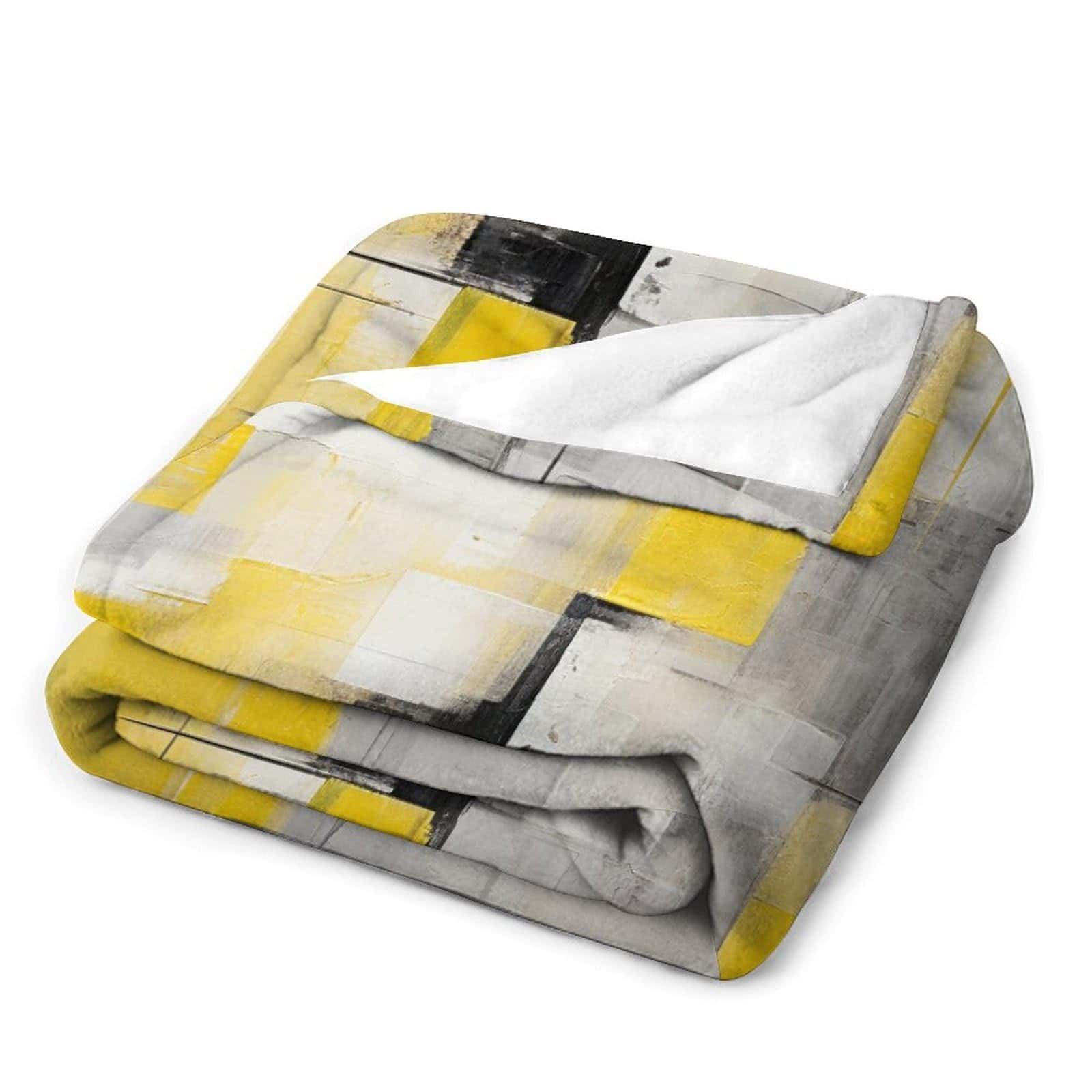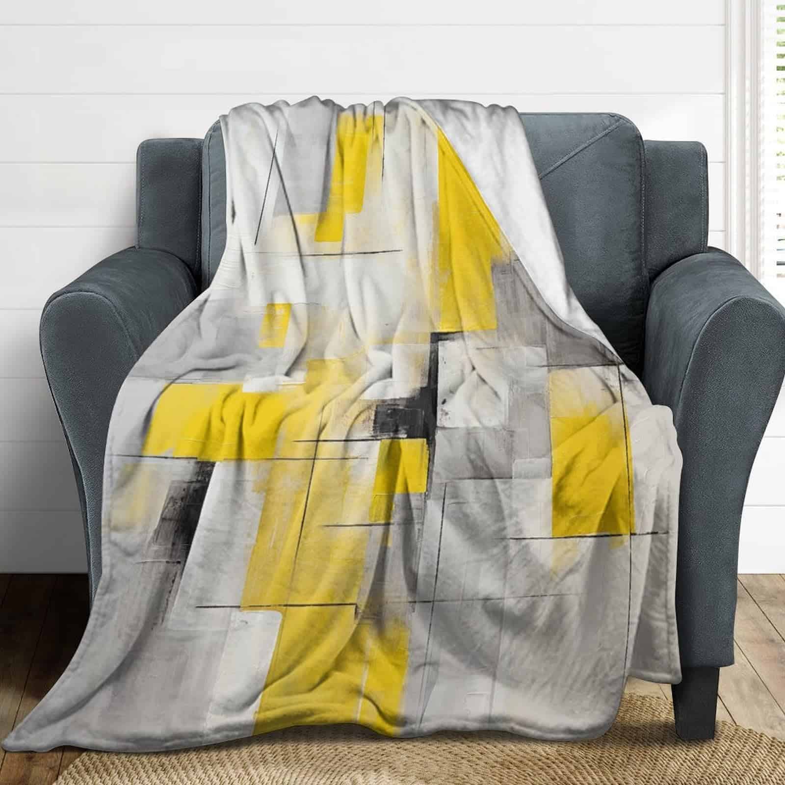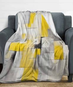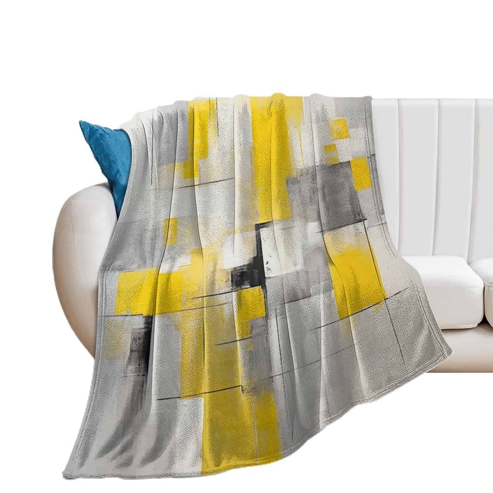 Pintura Abstracta en Cuadros Amarillos y Grises para Decoración del Hogar. Mantas Fuzzy Cálidas y Acogedoras con Diseño de Arte Gris para Invierno, Cama y Regalo para Adultos, Adolescentes y Niños 50″x60″