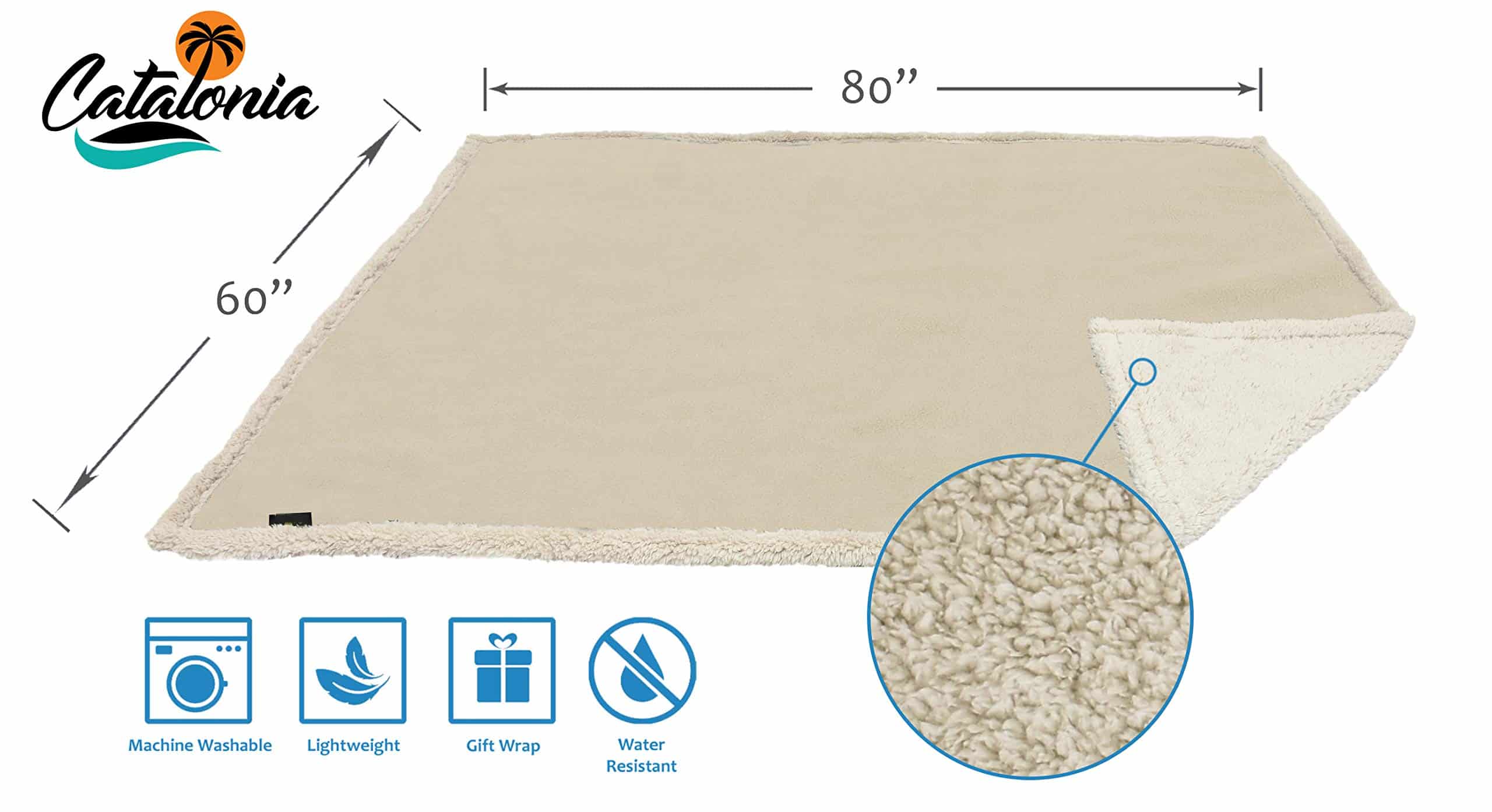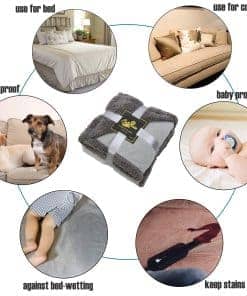 1. El objetivo principal de esta manta impermeable es prevenir que el líquido se filtre a través de ella. Se ha aplicado un revestimiento impermeable en el interior de la manta para lograr este objetivo. Sin embargo, la superficie de la fibra en sí misma no es impermeable, con el fin de proporcionar suavidad y comodidad al sentarse. 2. Manta impermeable duradera que ayuda a mantener manchas y cabello fuera del mobiliario y tapicería. Ideal para proteger sofás, sillas, camas, sábanas, edredones, asientos de coche, barcos, o llevarla a hoteles, playas, estadios, conciertos, acampadas y viajes, etc. Ideal para bebés, niños y personas con mascotas. 3. Diseñada en EE. UU., la manta impermeable deluxe de Catalonia es reversible para ofrecer dos texturas diferentes, un suave y grueso forro polar en un lado y un respaldo de Sherpa mullido en el otro para mantenerte cómodo y cálido, protegiéndote de la humedad y el frío. 4. El lado de microforro polar de la manta está hecho de tela duradera repelente al agua. El lado de Sherpa no es impermeable, pero no dejará pasar ningún líquido al otro lado. Nunca te preocupes por manchas húmedas en tu sofá, coche, cama o sofá. 5. Material: 100% poliéster, fácil de limpiar, se puede lavar a máquina en ciclo suave. Tamaño de la manta 80×60 pulgadas para abrazarse. Manta acogedora para adultos, adolescentes, niños y bebés. Perfecta como regalo de vacaciones, regalo de Navidad, regalo del Día de la Madre, regalo de Acción de Gracias.