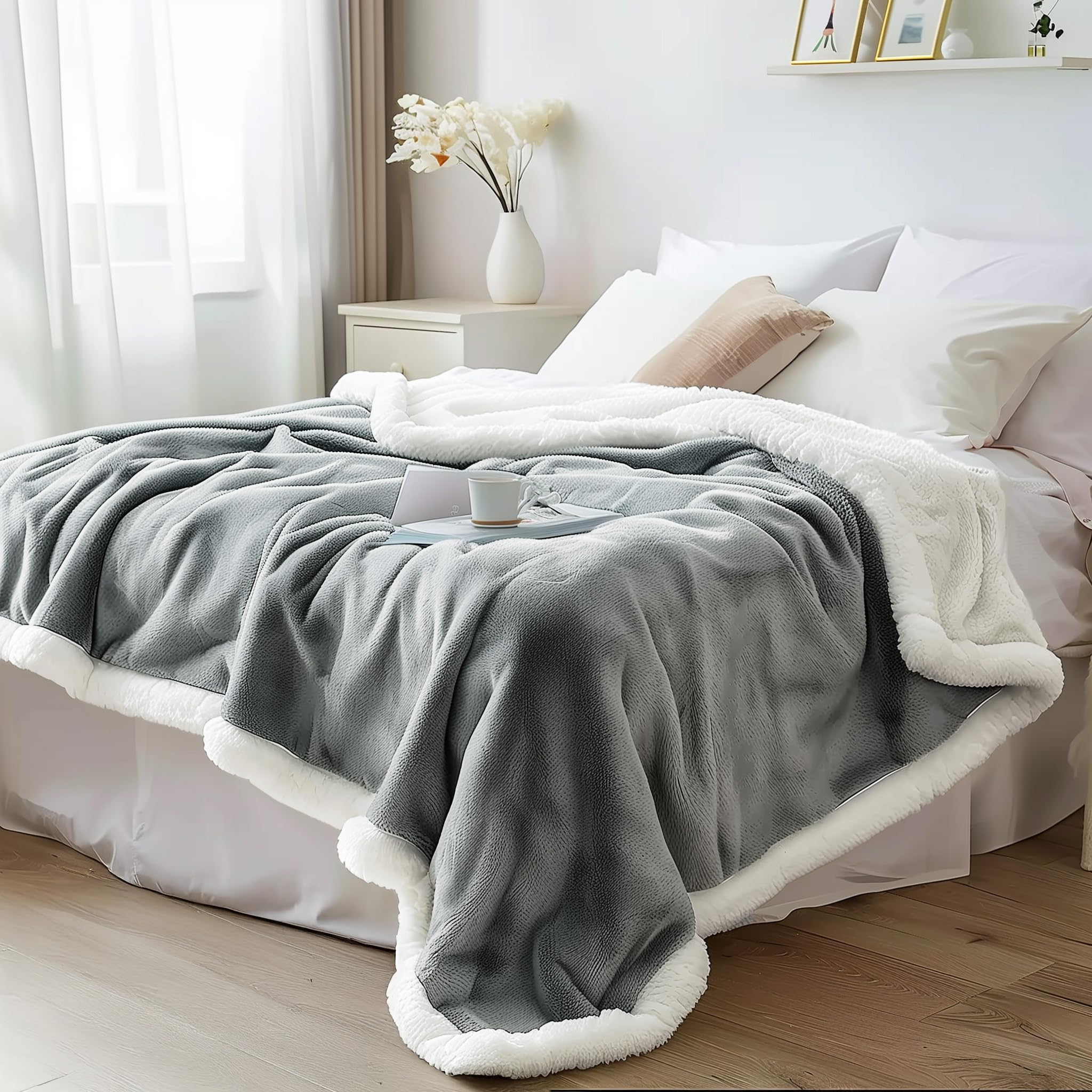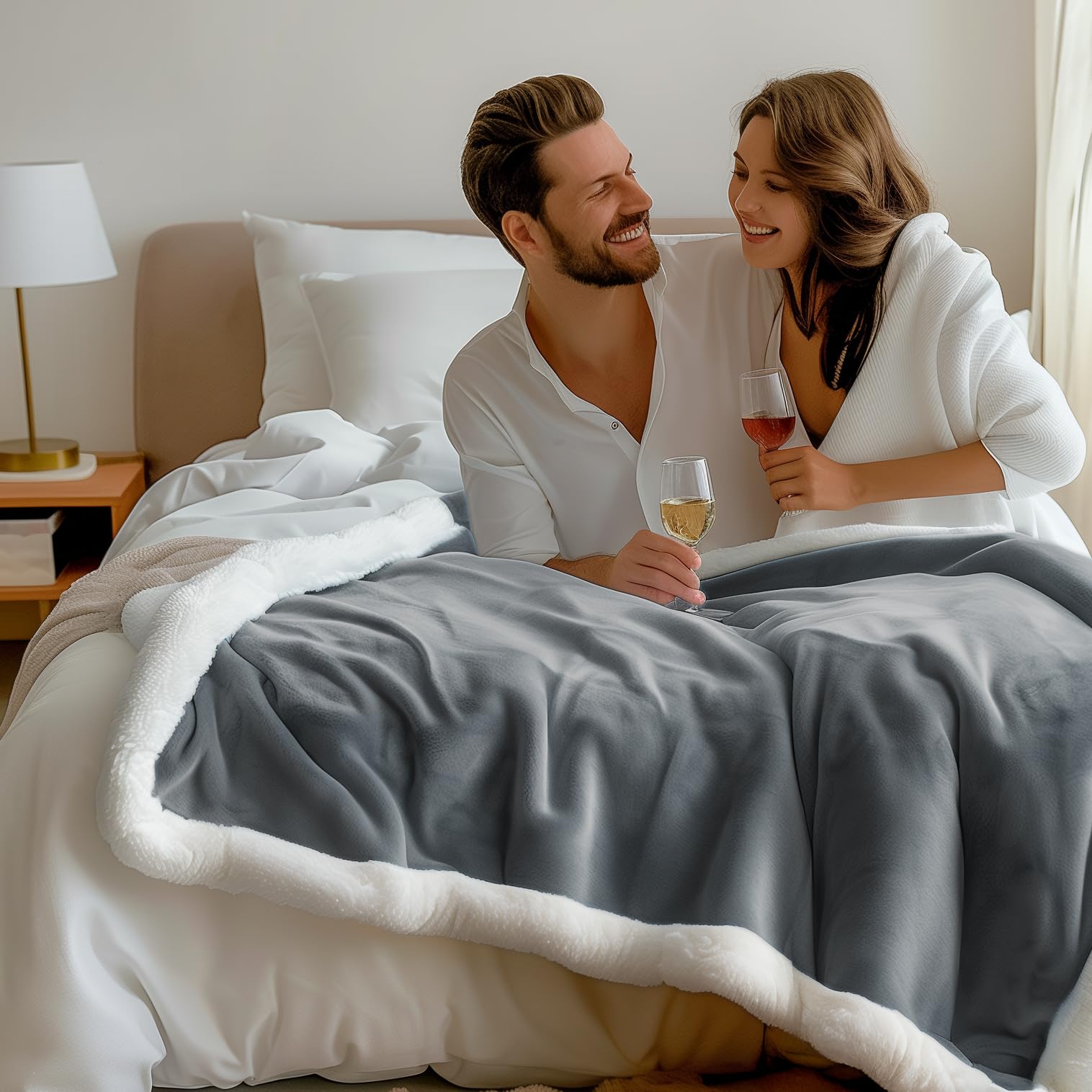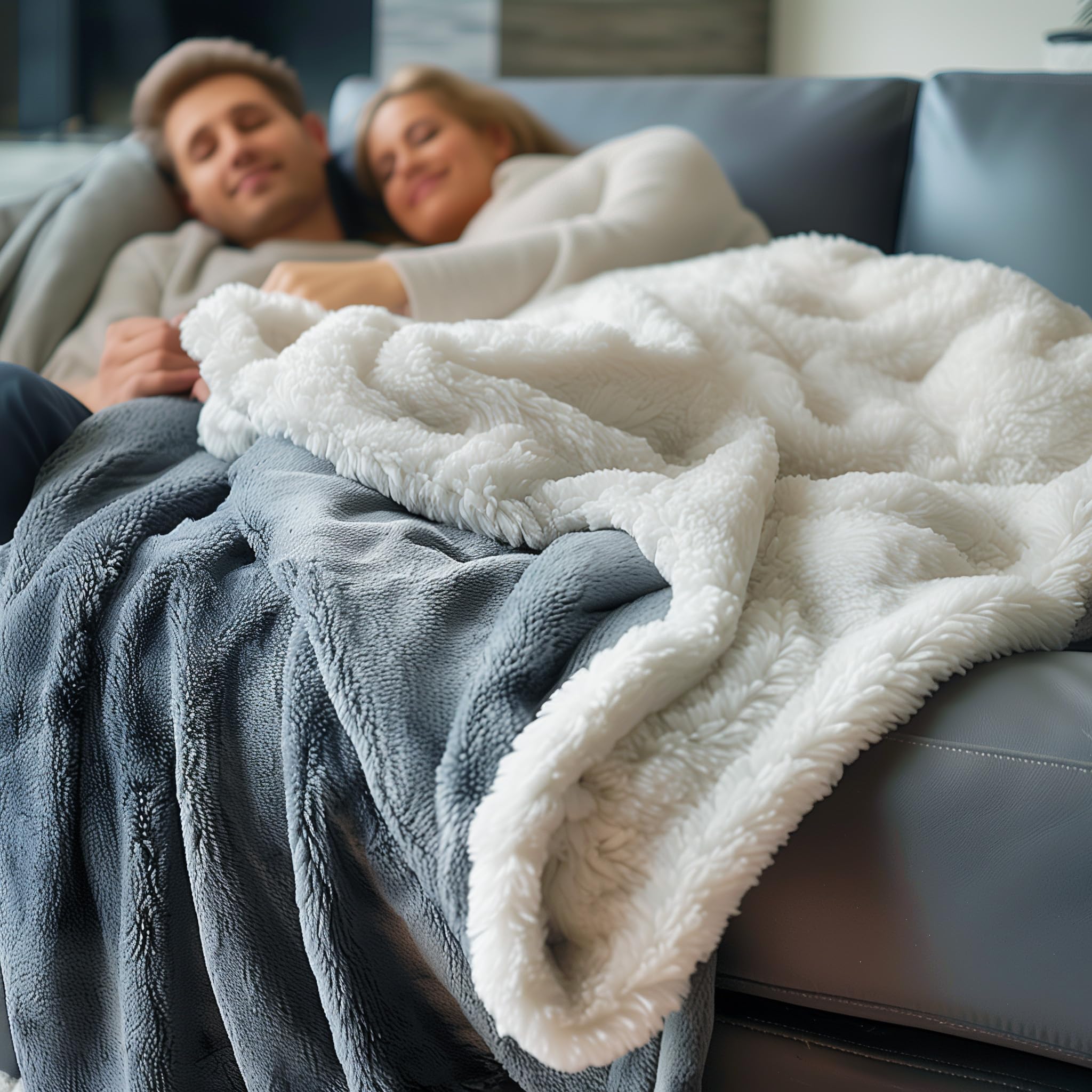 2. Calidez de Manta Sherpa: Las capas de felpa y sherpa ofrecen calor lujoso para parejas y amantes.