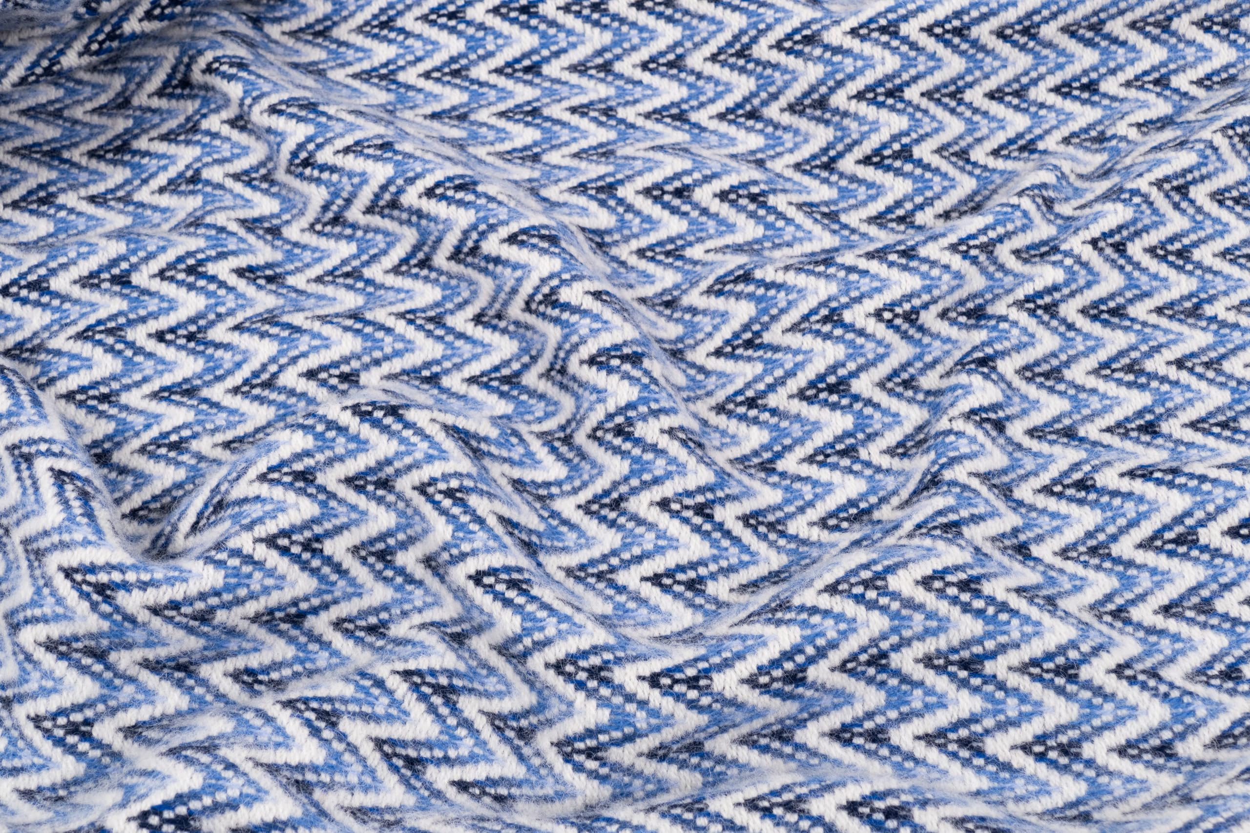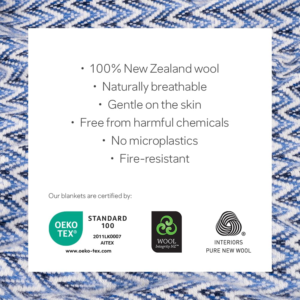 Manta interior Barker Textiles Shady Wave en color azul. Esta manta es perfecta para agregar un toque de calidez y estilo moderno a tu hogar. Está hecha de 100% lana de Nueva Zelanda, lo que la hace extremadamente suave y cómoda. Con unas medidas de 75×51 pulgadas, es ideal para usar en el sofá, la cama o donde desees. Además, se adapta perfectamente a la temperatura de tu cuerpo, manteniéndote abrigado sin sentirte sofocado. Esta manta es además respetuosa con el medio ambiente, ya que está libre de productos químicos dañinos y microplásticos. ¡Lleva la calidez y la calidad de la lana neozelandesa a tu hogar con esta increíble manta interior!