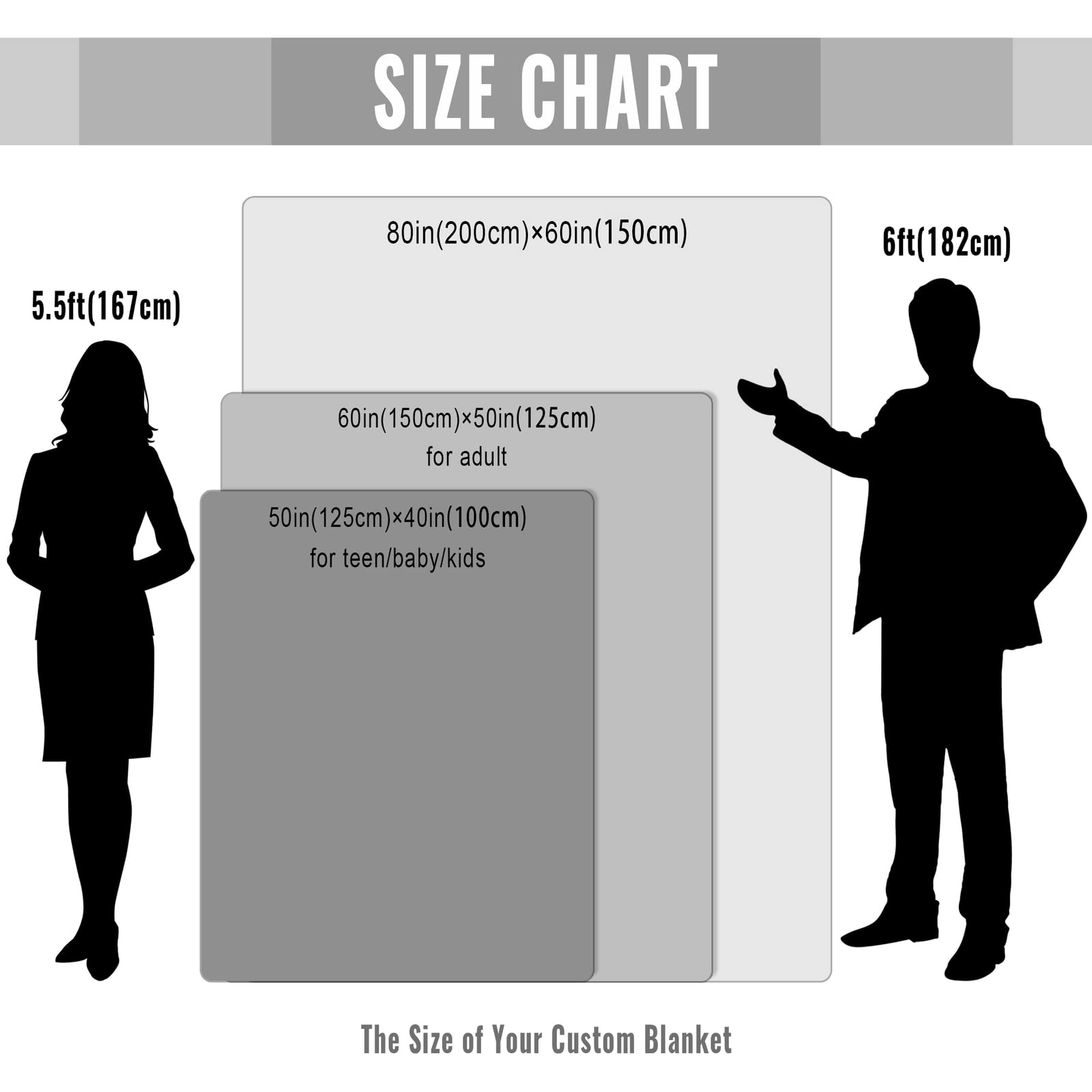 2. Tres tamaños 50×40 pulgadas/50×60 pulgadas/80×60 pulgadas. Nuestra manta única ofrece un patrón personalizado en un lado y un clásico blanco en el otro. Puede mantener el calor sin ser demasiado gruesa o sofocante, brindándole un equilibrio perfecto de calor, adecuado para todas las estaciones.