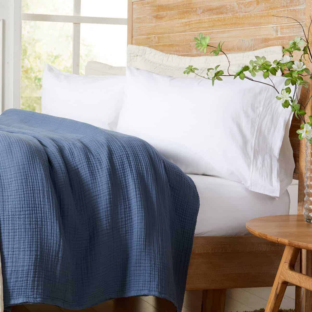Añade confort informal con un toque moderno a tu hogar con esta hermosa Manta de Cama de Muselina 100% Algodón de la Colección María de Market & Place. Confeccionada con un material de muselina de algodón suave y transpirable, esta manta ofrece un bonito acento a cualquier habitación durante todo el año. ¡Colócala en tu sofá favorito o como una elegante pieza de capas sobre tu cama! Esta manta es lavable a máquina para un cuidado fácil y un uso duradero. Elige entre tres tamaños: Twin (66″ de ancho x 90″ de largo), Full/Queen (90″ de ancho x 90″ de largo); King (102″ de ancho x 90″ de largo) y cinco colores: Blanco Roto, Beige, Óxido, Carbón y Azul.