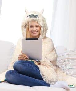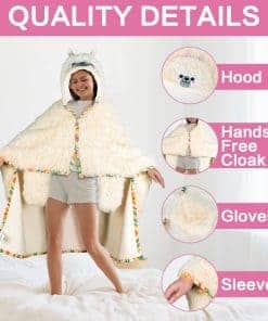 Wrap yourself with our super plush fluffy sherpa and faux fur with this llama alpaca hooded blanket for adults. Made from the highest quality materials, it provides ultimate warmth and comfort. Perfect llama gift idea for all your loved ones, beautifully packaged and ready to bring smiles to birthdays and Christmas. Stay warm and cozy while going hands-free with this versatile and convenient cloak blanket. Machine washable for easy cleaning and maintenance. Suitable for all shapes and sizes, ensuring warmth from head to toe wherever you go.