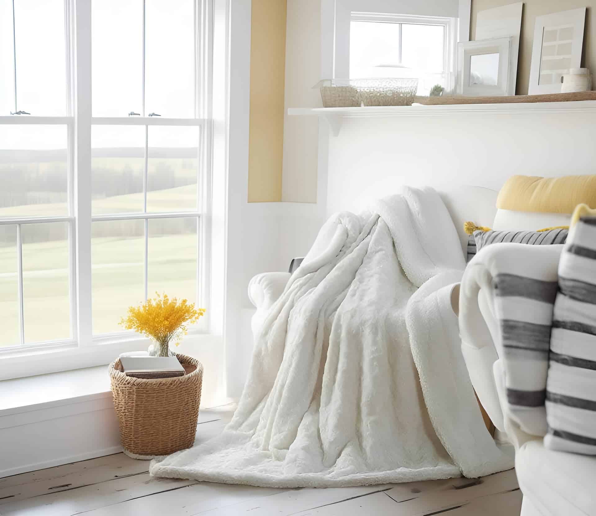 Manta lujosa de rosas blancas DaDa Bedding con felpa