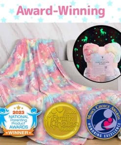 La manta de unicornio VUDECO es perfecta para regalar a niñas y niños, ya que es suave y cómoda para la piel sensible. Con un gran efecto luminoso que dura horas, esta manta es ideal como juguete para niñas de 6 a 8 años. Con un diseño de unicornio y estrellas, brinda seguridad a las niñas durante la noche. Además, es fácil de recargar y limpiar, ya que se puede lavar a máquina sin perder su brillo. Esta manta luminosa de unicornio es ideal para niños mayores de 1 año y hasta 10 años, siendo un regalo perfecto para cumpleaños, navidad u otras ocasiones especiales.