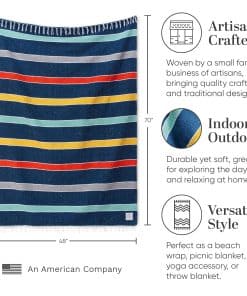 El accesorio más versátil que nunca tendrás. Nuestras suaves y duraderas mantas mexicanas son perfectas para llevar a todas partes, ya sea la playa, el parque o yoga. Tejidas a mano por una pequeña familia de artesanos en Tlaxcala, México, y diseñadas con un estilo clásico californiano, esta será tu nueva manta favorita. Usa esta manta multiusos para agregar color y comodidad en tu hogar, como una capa fresca en tu sofá, cama o banco de cocina.