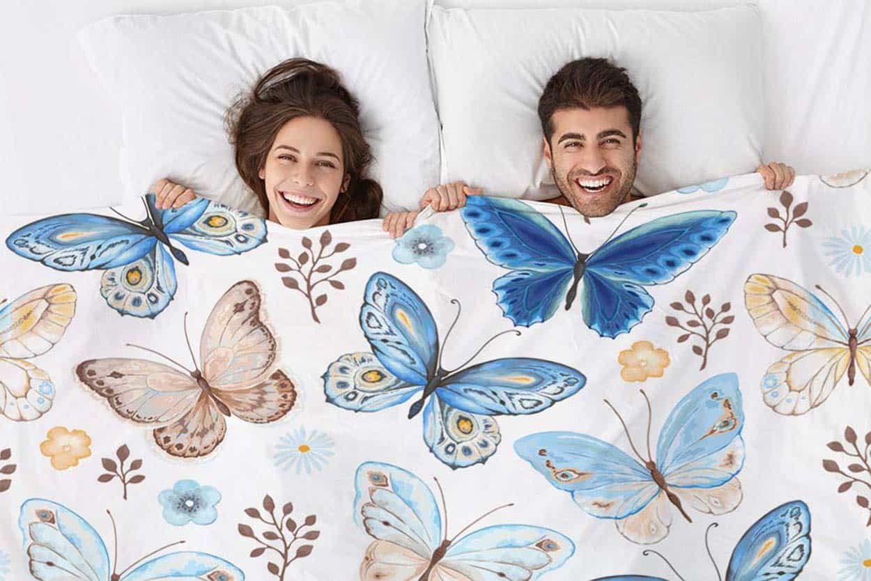 Manta Mugod de Mariposas Coloridas Azul, Amarillo y Marrón