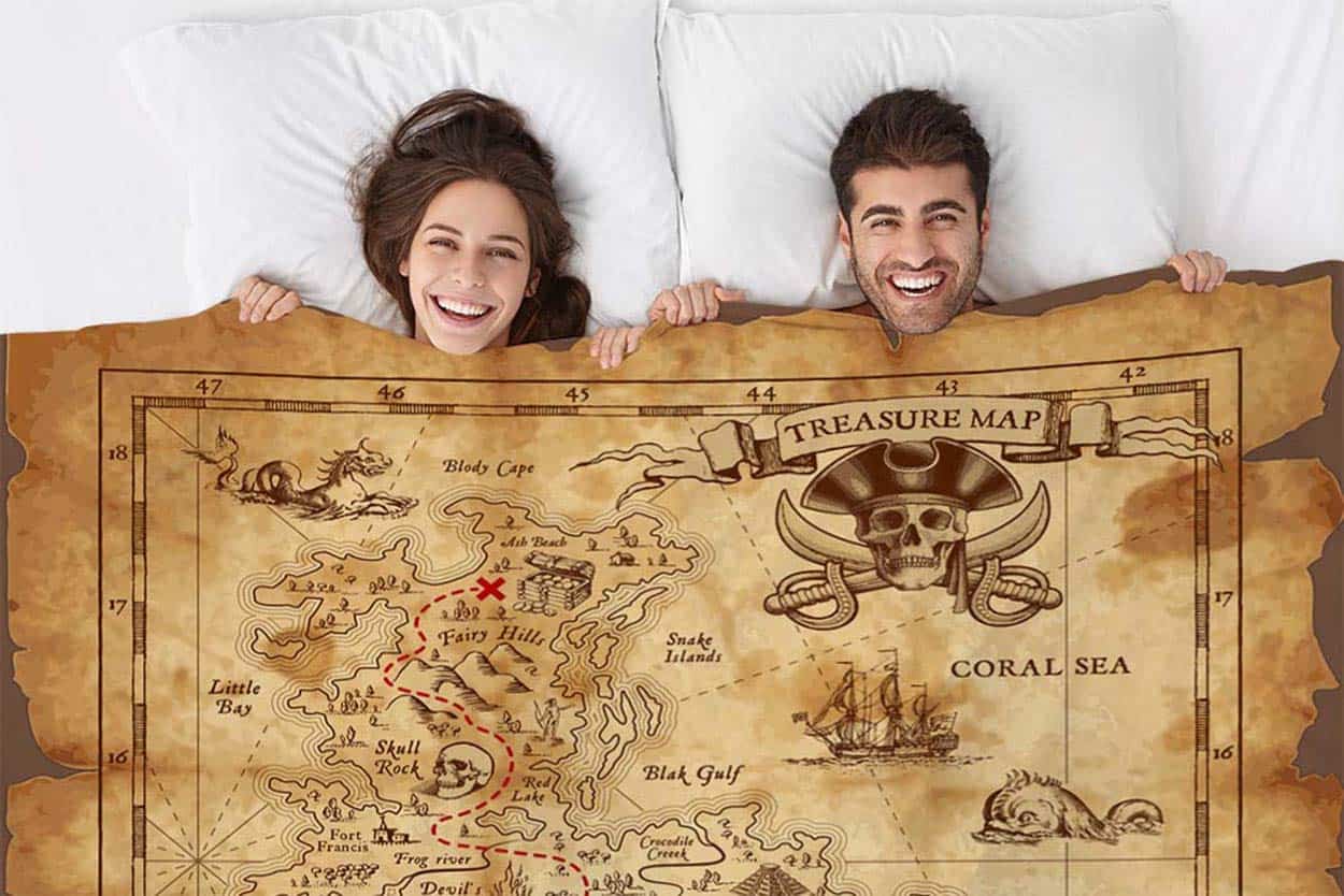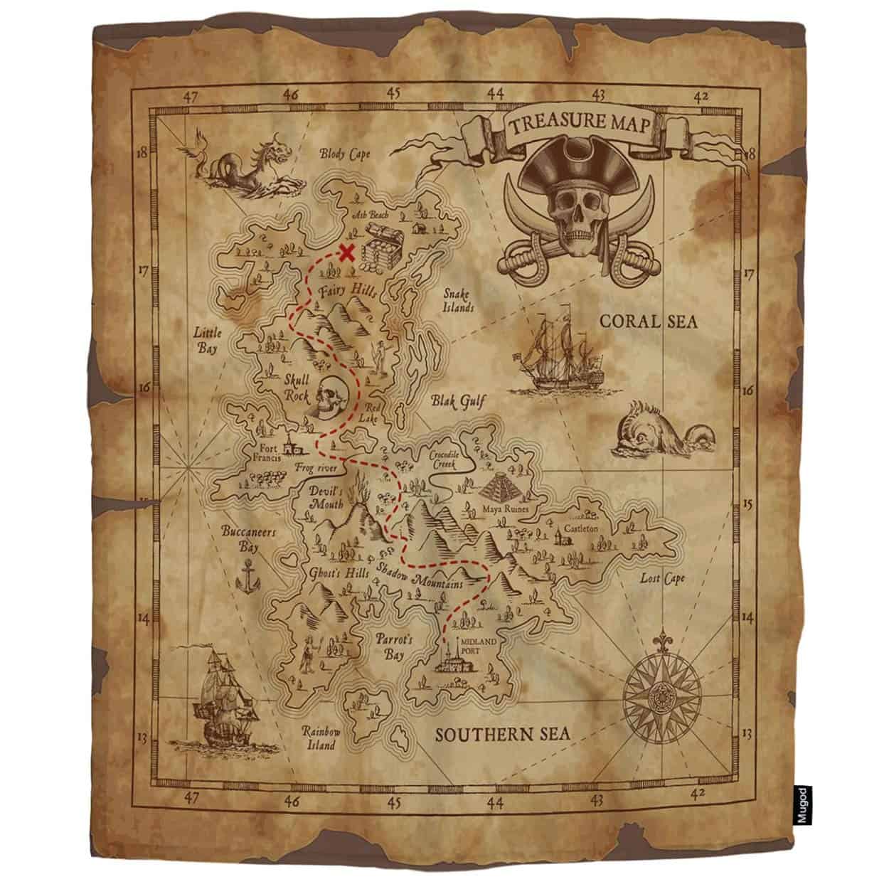 Manta Mugod Mapa Tesoro y Emblema de Pirata Velero Brújula