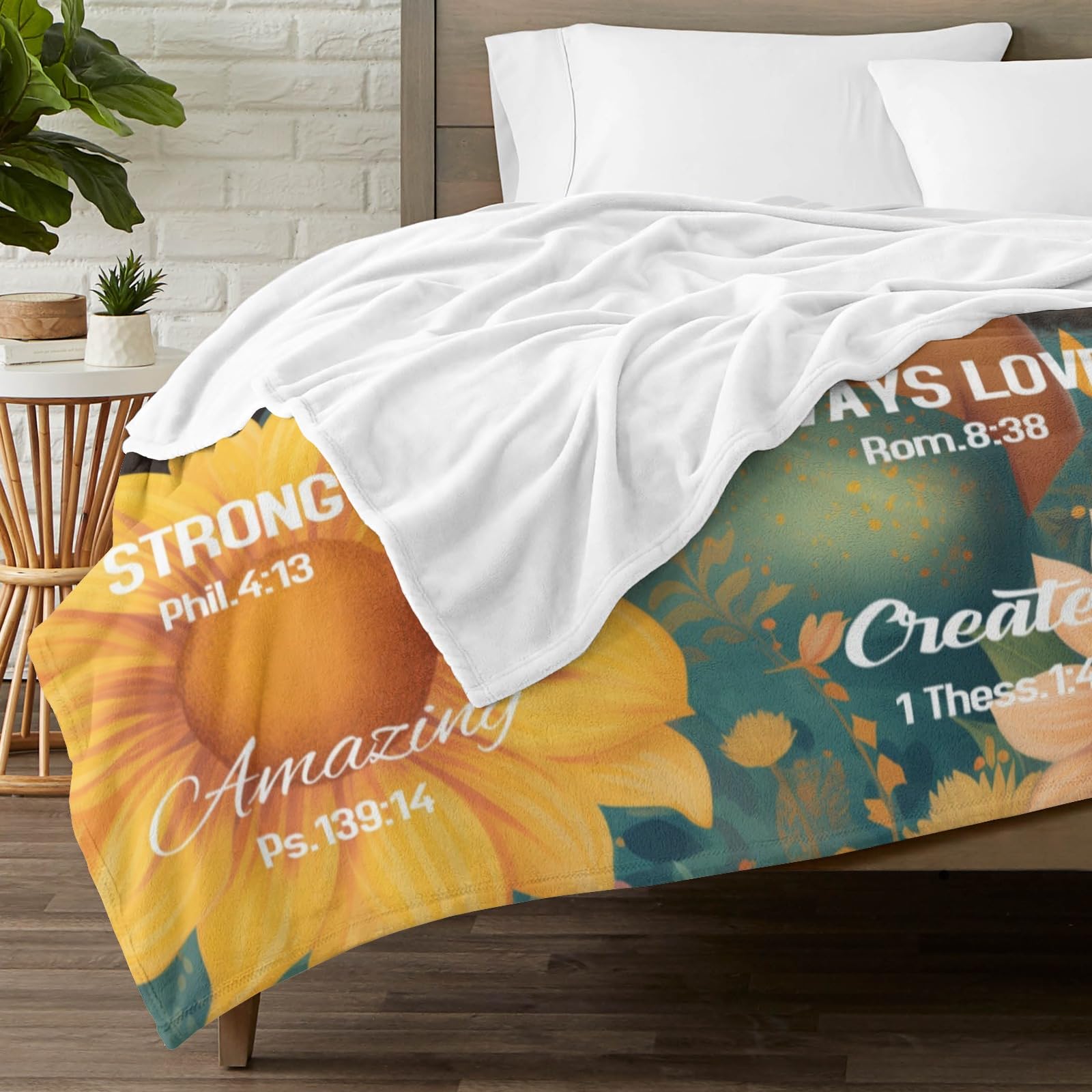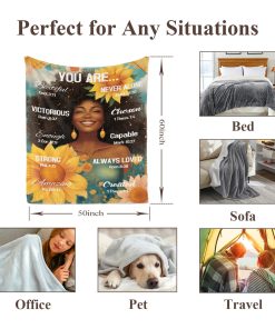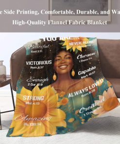 1. Hecho de poliéster de franela premium de 340GSM, pesa 740g (1.63 libras), manta gruesa y ligera. Acogedora y suave te hacen sentir hermosa. 2. Un lado con estampado de mujeres girasoles de alta definición manta regalos temáticos religiosos para mujeres. Regalo lindo y considerado para cumpleaños, día de San Valentín, día de la madre, día del padre, Navidad, bodas y fiestas de inauguración. 3. Manta de 50×60 pulgadas, compañera perfecta para manta de cama, manta de sofá de sala de estar o manta de repuesto de sofá de oficina para leer, ver la televisión o tomar una siesta. 4. Manta ideal para tus noches de cine, picnics en el parque, viajes de camping o viajes de vacaciones. 5. Si no estás satisfecho con la manta, por favor siéntete libre de hacernos saber cualquier pregunta.