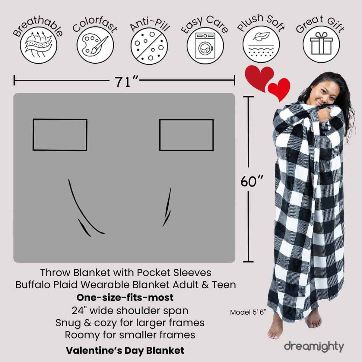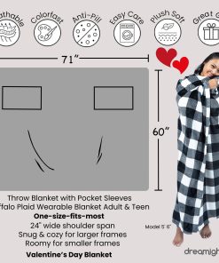 1. Bolsillos de Mangas Únicos: Mantente acogedor con las mantas portátiles de Dreamighty, la manta definitiva para ella que puede ser una bata manta y suéter manta. Diseñada con bolsillos de mangas y agujeros para los brazos, y un regalo de San Valentín perfecto para hombres y mujeres.