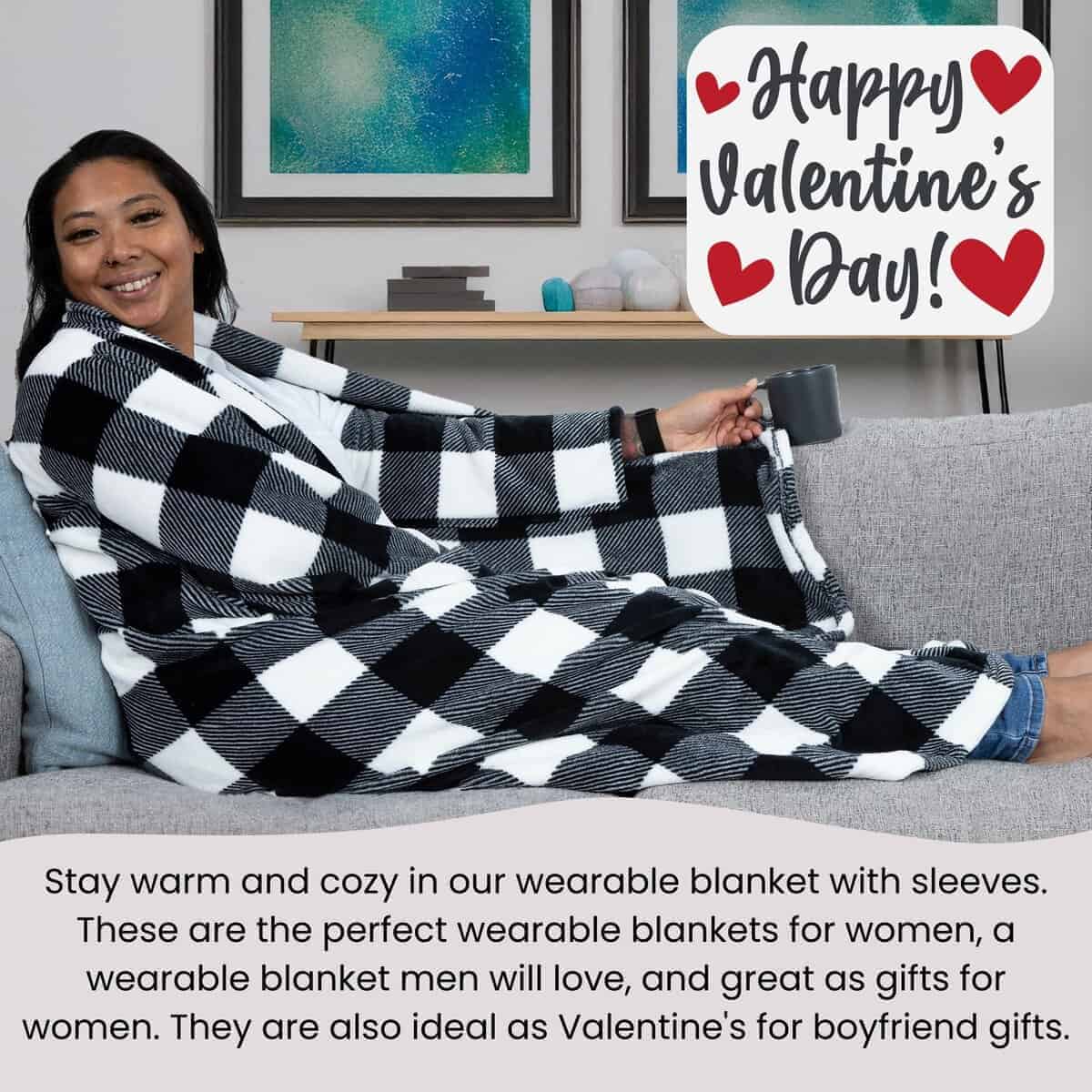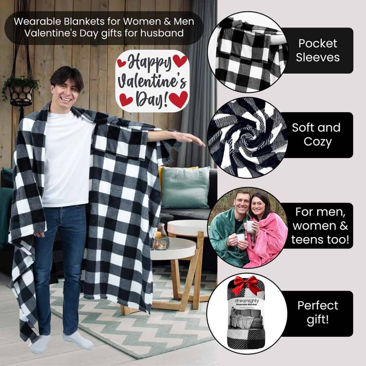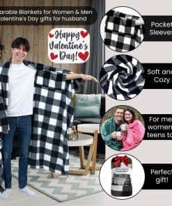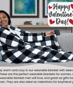 5. Comparte el Regalo de la Comodidad: Perfecta para abrazos, esta manta portátil a cuadros en blanco y negro para adultos cuenta con mangas y es el regalo cálido ideal para el Día de la Madre o sorpresas de Acción de Gracias. Una forma pensada de compartir la comodidad que apreciarán día a día!