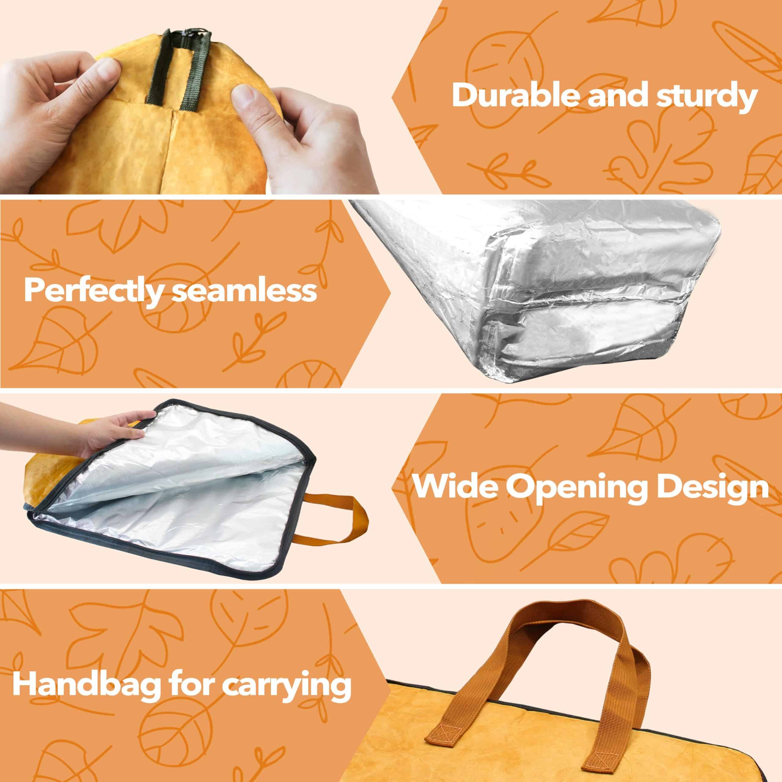 2. Capacidad Extra Grande y Diseño de Boca Ancha Con medidas de 21″x15″x8″, el diseño de boca ancha facilita la inserción y extracción de cortes de carne grandes, como brisket, pavo y pierna de cerdo. Satisface perfectamente las necesidades de los entusiastas de la BBQ y se convierte en una herramienta esencial para asar a la parrilla, especialmente como manta para BBQ para reposar carne, asegurando que la carne se mantenga a la temperatura ideal durante la fase de reposo.