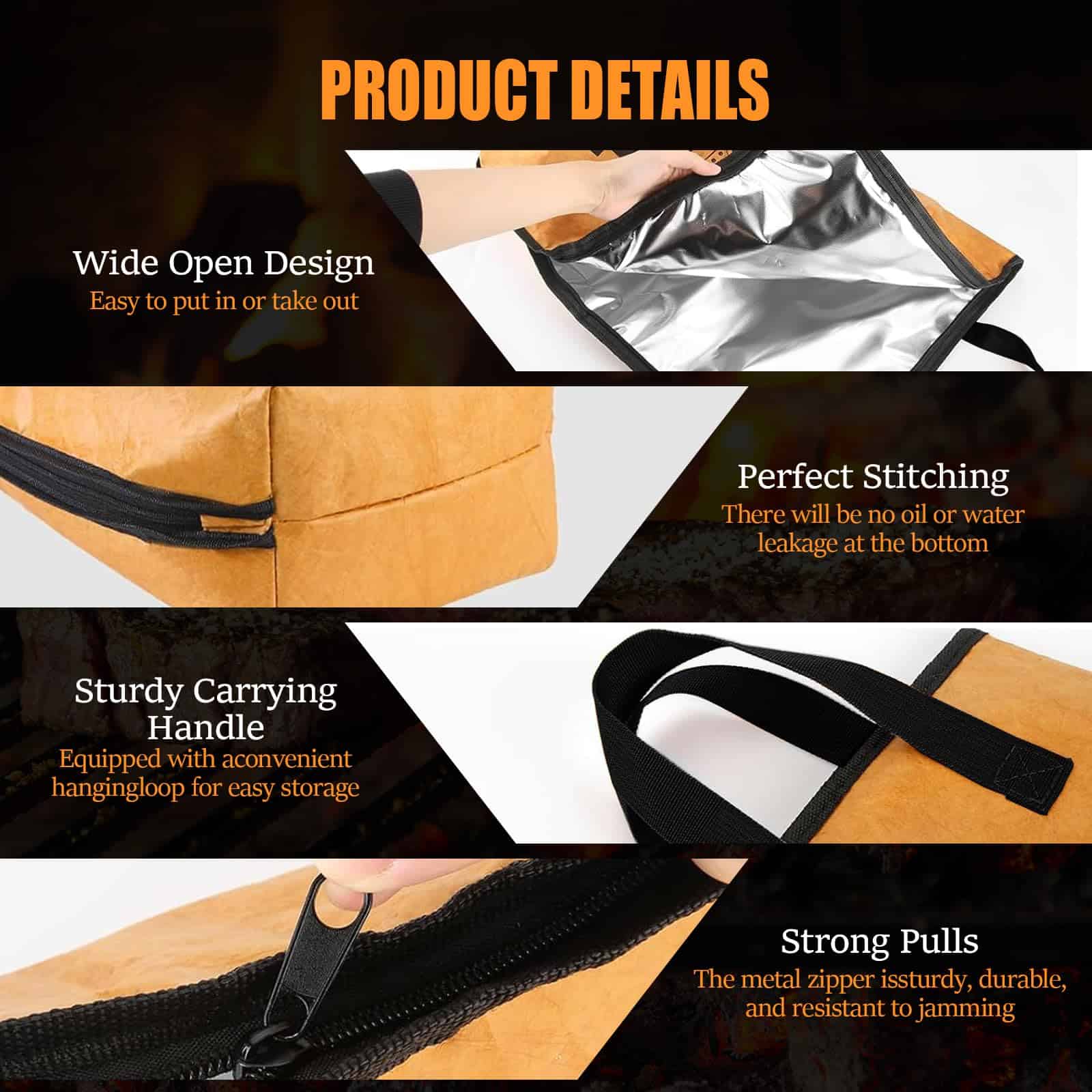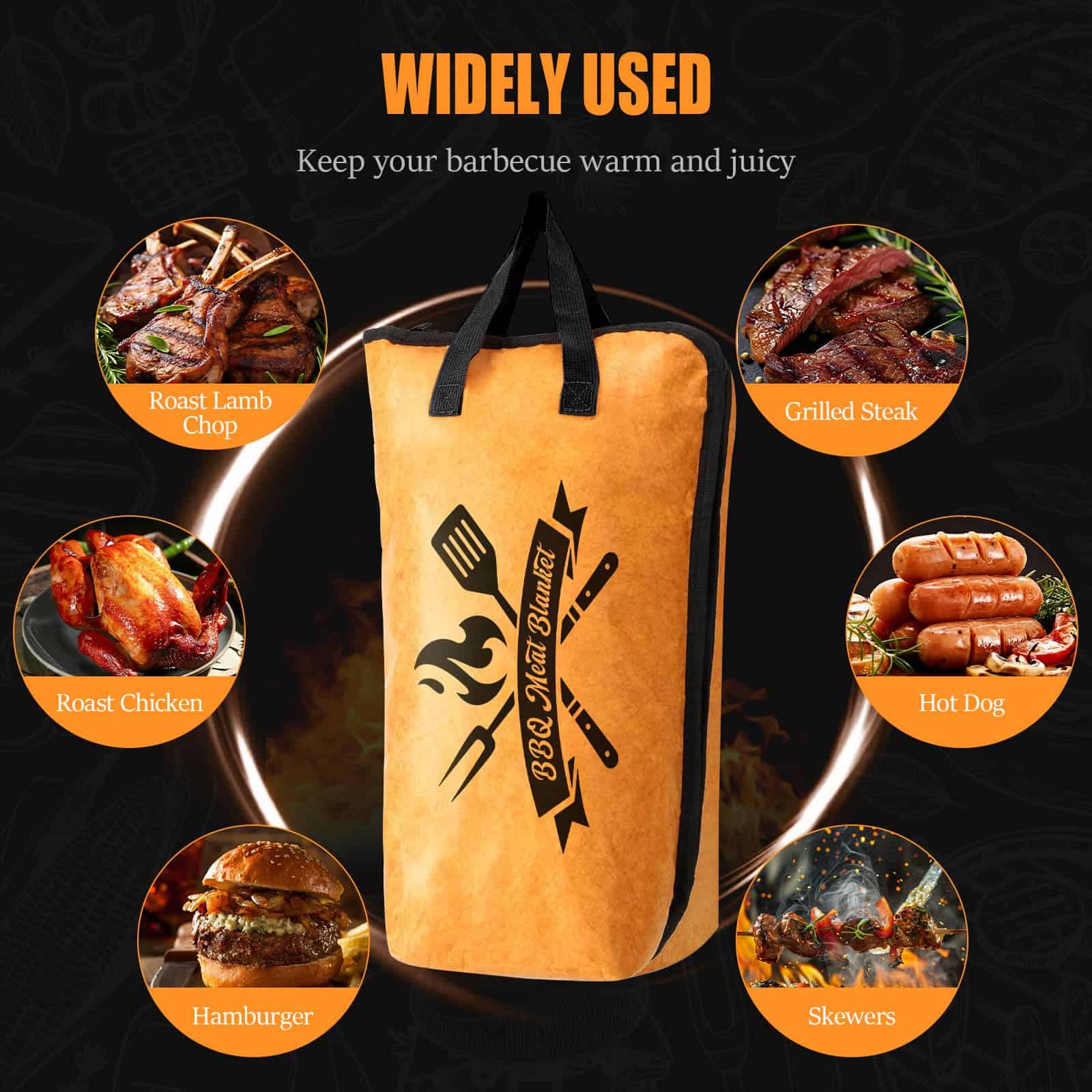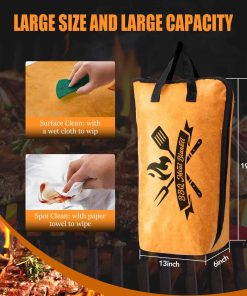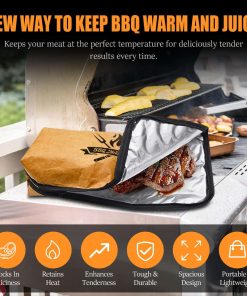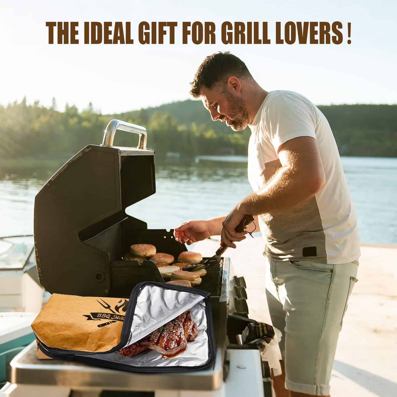 1. Ideal para carnes de gran tamaño Nuestra Manta para BBQ para Reposar Carne, de tamaño 13 W x 19 H x 6 D, tiene un interior espacioso. Se adapta fácilmente a pechugas de pollo grandes, pavos enteros, paletas de cerdo y más. Ya sea grandes asados, pollos enteros, cortes de cerdo grandes o múltiples carnes a la vez, esta manta puede con todo. Perfecta para fiestas de BBQ, picnics o campamentos, cubre todas tus necesidades de reposar carnes de gran tamaño. 2. Diseño de boca ancha para un acceso sin complicaciones Con un ingenioso diseño de apertura amplia, esta manta para BBQ simplifica el proceso de colocar y retirar tu carne asada. Con un mínimo esfuerzo involucrado, la operación rápida no solo eleva tu experiencia general de BBQ, sondern que también ayuda a mantener la manta impecable, libre de derrames no deseados y manchas. 3. Aislamiento de 5 capas para sellar el jugo ¡Dile adiós a la carne seca y dura para siempre! Gracias a su avanzada construcción de aislamiento de 5 capas, esta bolsa aislante preserva eficazmente la temperatura óptima para tus delicias barbacoas. Durante el periodo de reposo, permite que la carne reabsorba la humedad, asegurando que cada mordida permanezca exquisitamente tierna y jugosa. Para cada entusiasta de la barbacoa apasionado, este es un accesorio de parrilla esencial que no debe faltar. 4. Portátil e impermeabilizado Esta bolsa para reposar carne asada está diseñada pensando en la portabilidad. Es ligera, está construida para durar y se dobla con facilidad, lo que la convierte en un compañero ideal para actividades sobre la marcha. Se utilizan materiales de alta calidad para garantizar que no se filtre aceite o agua, mientras que el diseño robusto de la cremallera asegura un cierre seguro, facilitando el almacenamiento y transporte conveniente. 5. Fácil de limpiar Limpiar esta bolsa aislante para reposar carne es muy fácil. Simplemente puedes limpiarla con un paño húmedo o lavarla con agua tibia y jabonosa. Para mayor comodidad, también es apta para lavavajillas. Incluso con un uso regular y frecuente, mantendrá su limpieza, brindándote una experiencia de BBQ sin estrés cada vez. 6. El regalo perfecto para hombres ¿Buscas el regalo de cumpleaños ideal para papá, un presente considerado para tu esposo o un regalo único para hombres que parecen tenerlo todo? No busques más que la Manta para BBQ para Reposar Carne. Es práctica y viene lista para regalar, lo que la convierte en la idea de regalo de cumpleaños definitiva para cualquier hombre que ame hacer barbacoas.