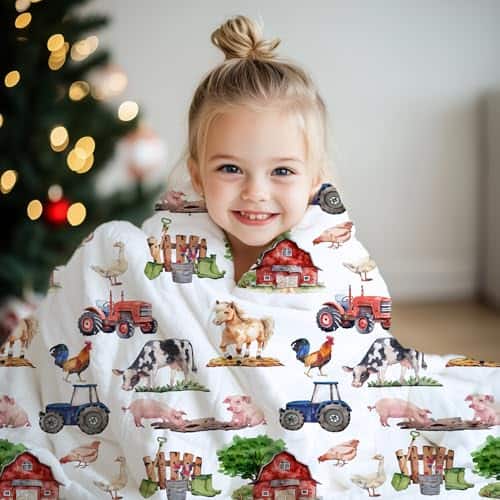 1. Ligero y suave Nuestra manta de franela esponjosa con lindos animales de granja combina tela de primera calidad con un peluche suave y acogedor al tacto, amigable con la piel delicada, cálido y ligero para mantenerte cómodo a lo largo de los años.