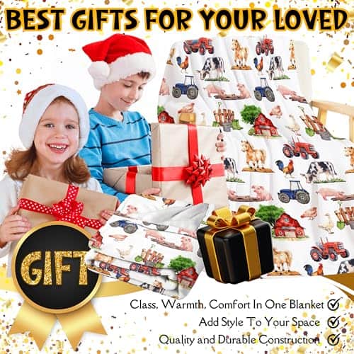 4. Mejor regalo La manta acogedora y suave con lindo camión de animales de granja se puede utilizar como regalo para hacer que el destinatario sienta calidez y amor. Cada manta estará bellamente envuelta, para sorprender a tus amigos o familiares en Navidad, Halloween, Acción de Gracias, Pascua, Día del Niño, cumpleaños o cualquier otra ocasión. Seguramente les encantará.