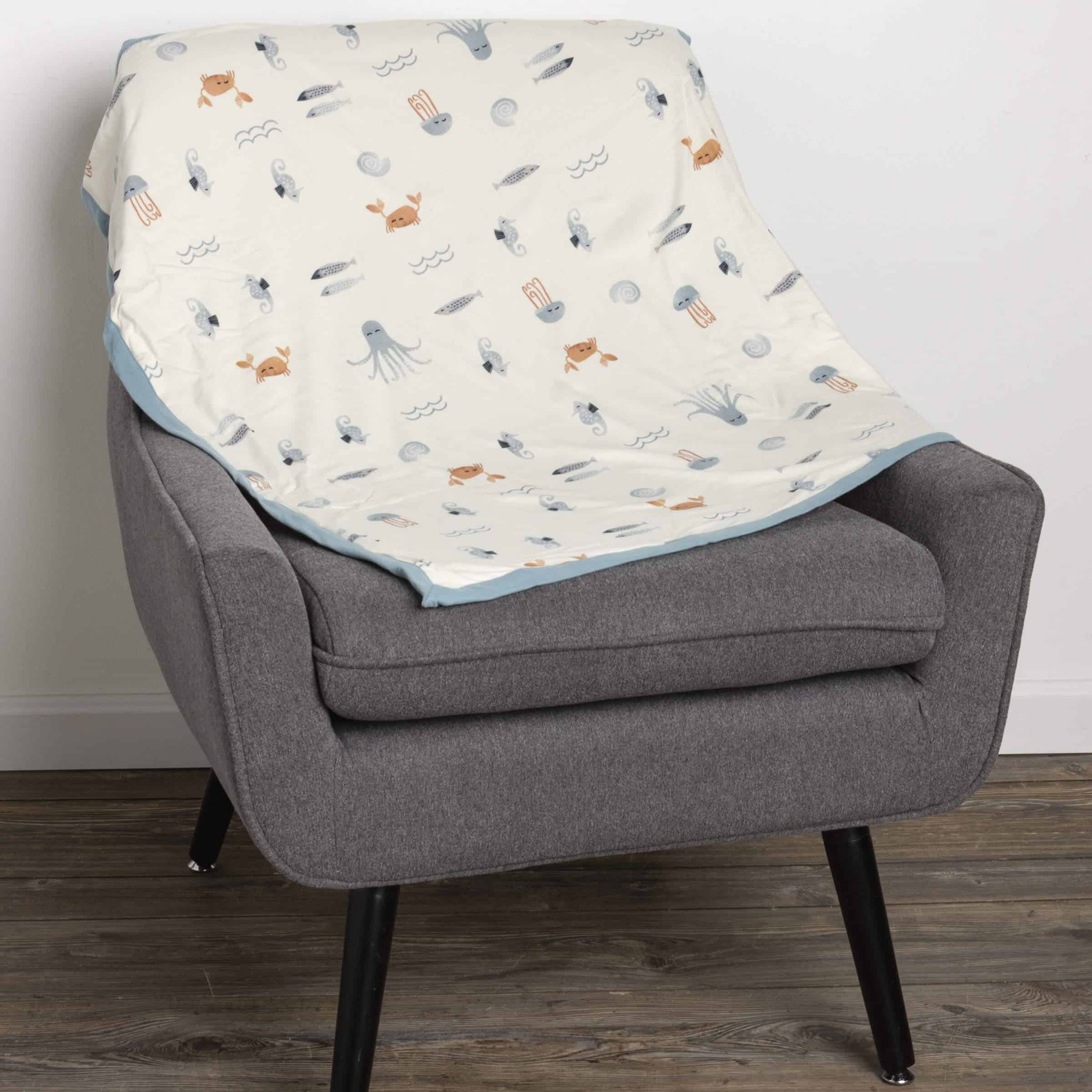 Hecha con algodón peinado y poli satén de lujo, una manta súper suave con diseños neutrales en azul y rosa bajo el mar en todo el tejido. Ideal para tantos usos – perfecta para la cuna del bebé, usar en un portabebé, como cubierta para amamantar, en el cochecito o como manta de viaje. Lavable a máquina. costuras y telas. El verdadero éxito para Kathy es devolver. En 2018 celebramos la formación oficial del Círculo de Amigos de Kathy como una organización sin fines de lucro 501c, que brinda oportunidades sociales a través de eventos temáticos para adultos con diversos niveles de capacidades dirigidos por nuestros empleados que ofrecen su tiempo como voluntarios. También nos asociamos con la Galería Friendship Heart para crear una colección de hermosas obras de arte creadas por los artistas de la galería con autismo y discapacidades como una forma de contribuir al éxito de la galería y mostrar el increíble trabajo de los artistas. Estas asociaciones han ilustrado verdaderamente cómo Primitives by Kathy combina una pasión por la creatividad con una cultura de cuidado.