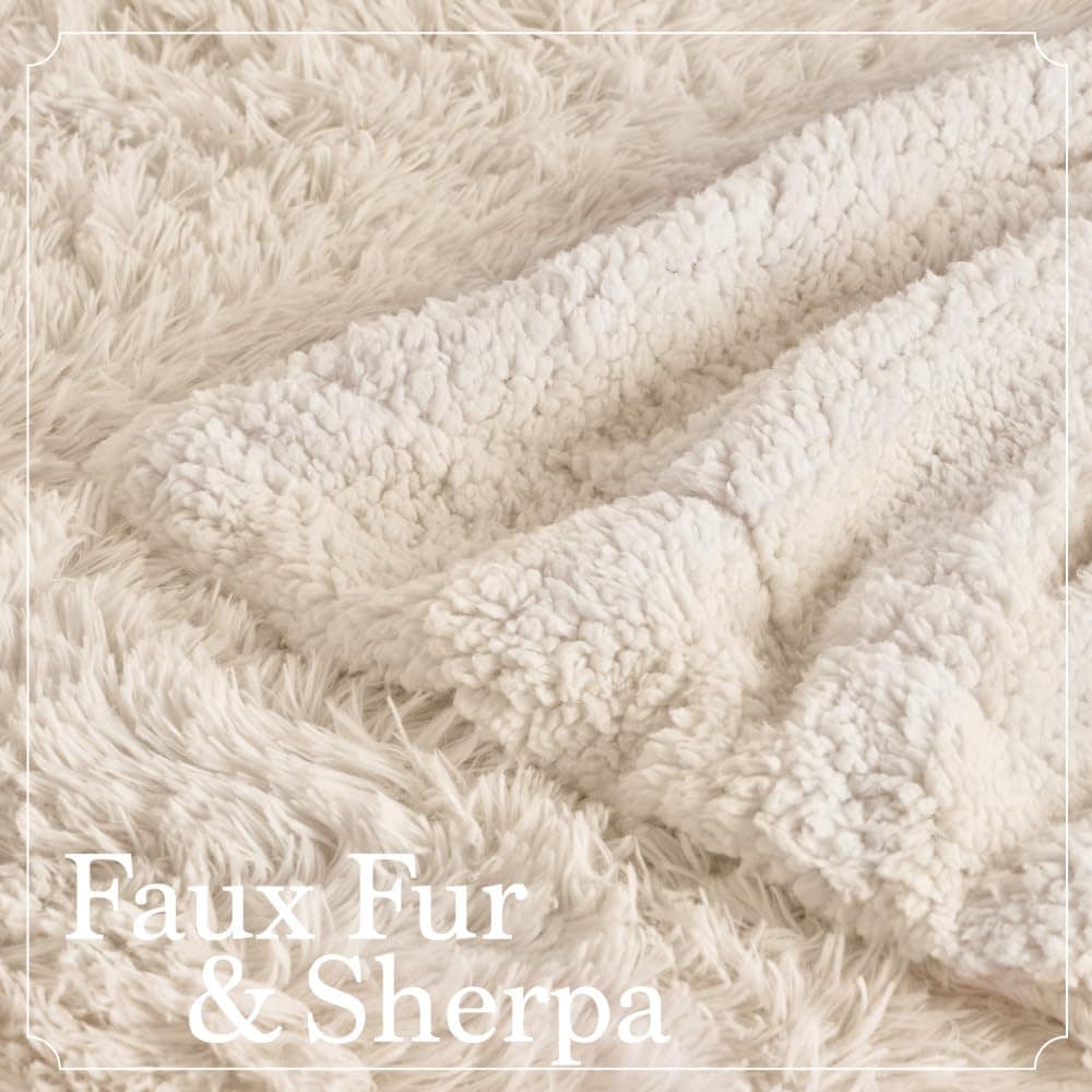 2. Shag y Sherpa reversible: creado con una capa doble de shag de alta calidad en la parte superior y un grueso sherpa en la parte inferior; el doble de grosor y el doble de calidez; el diseño reversible permite dos formas de acurrucarse y agregar estilo adicional a tu hogar.