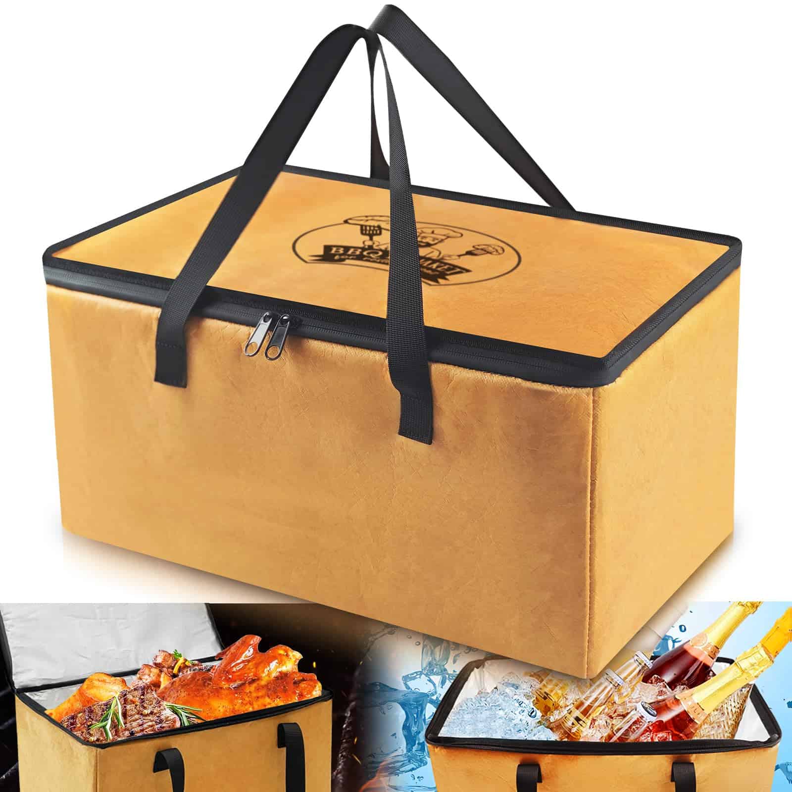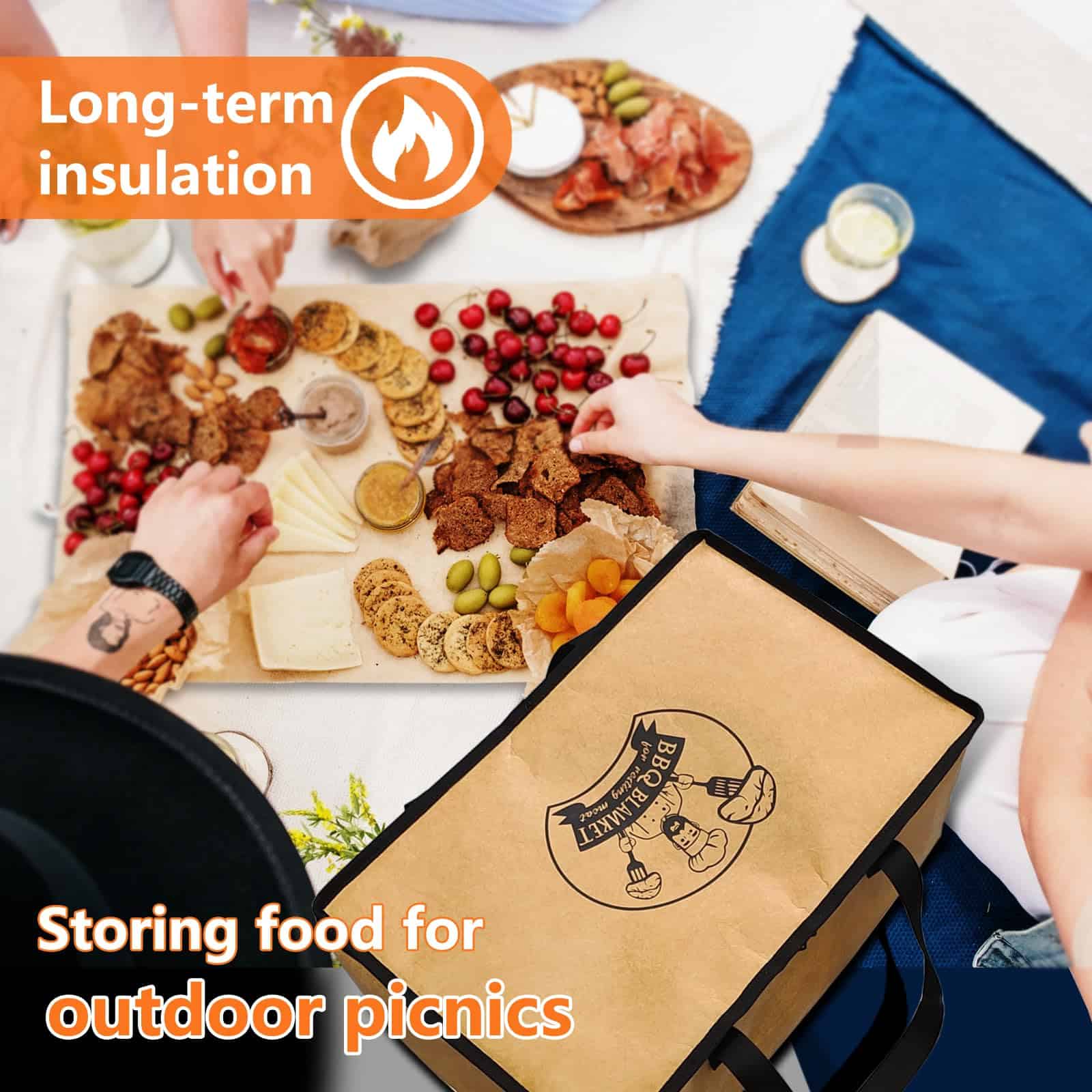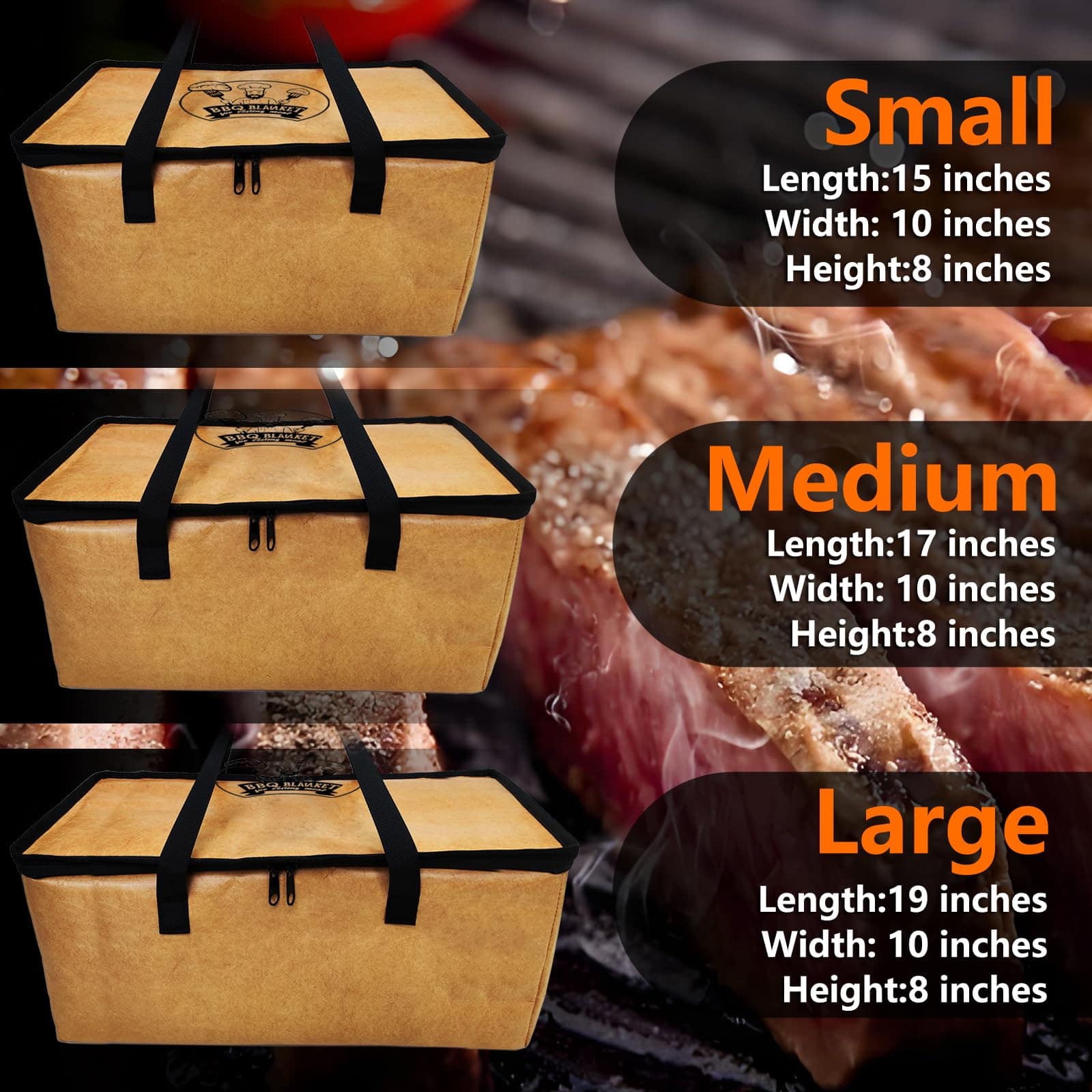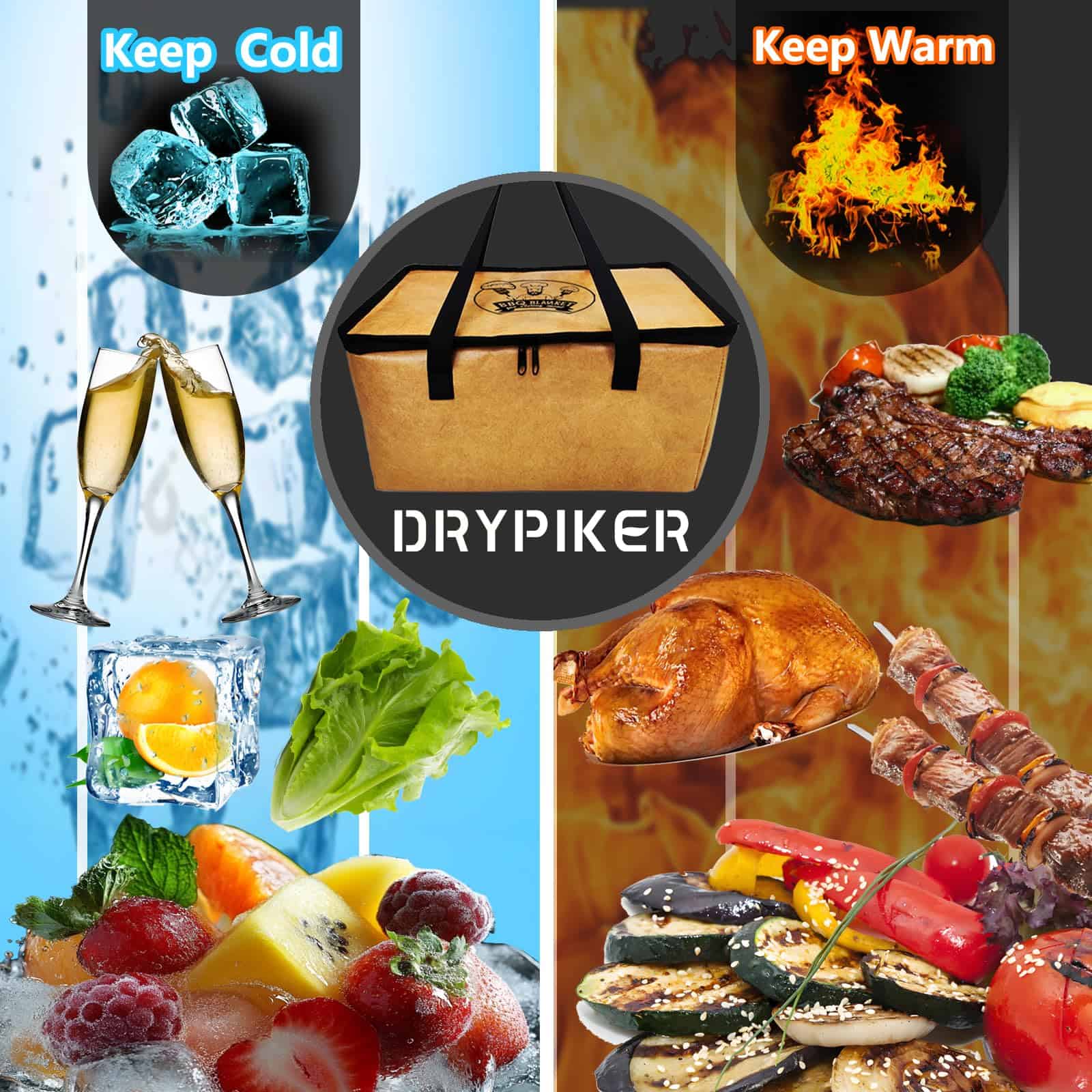 Manta para descansar carne asada DRYPIKER BBQ para transportar y descansar carnes ahumadas. Esta manta es ideal para mantener la carne caliente y jugosa, sin perder calor ni distribución desigual de los jugos. Cuenta con un cierre de cremallera para un sellado mejorado, lo que evita derrames de jugos de carne. Su diseño espacioso permite transportar 1-2 pavos o un gran brisket, brindando varias porciones de carne. La construcción de tres capas incluye una capa reflectante sin costuras, una capa de aislamiento de perlas de algodón y una capa superior resistente a las rasgaduras y a la grasa, asegurando durabilidad y resistencia. Esta manta es reutilizable, ya que su capa reflectante aislante puede limpiarse fácilmente para su próximo uso. Un regalo ideal para esposos o padres amantes de la barbacoa, que apreciarán la practicidad y utilidad de esta bolsa de entrega BBQ.