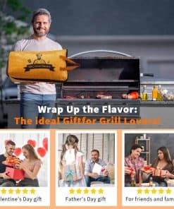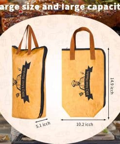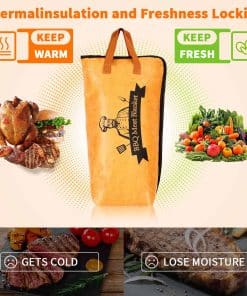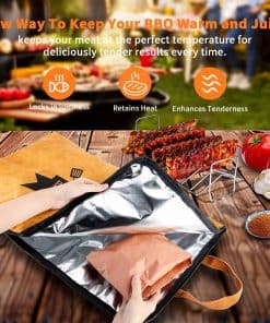 Perfectamente Acomoda Carnes Grandes Nuestra manta para descansar carne de barbacoa mide 10 ‘W x 15’ H x 5 ‘D, lo suficientemente grande para caber en pechugas grandes, pavo, paleta de cerdo y más. El mejor para cortes individuales pequeños como bistecs, pechugas de pollo, chuletas de cerdo pequeñas o cordero. Ya sea una fiesta de barbacoa, picnic o camping, satisface perfectamente tus necesidades. Diseño conveniente La bolsa de manta para barbacoa cuenta con una abertura de boca ancha, que la hace más conveniente para poner o sacar su carne de barbacoa. Esta duradera manta para barbacoa con un cierre de cremallera robusto. Plegable y se pliega para un almacenamiento fácil y uso futuro. Aislamiento de 5 capas para retener los jugos ¡Dile adiós a la carne seca y dura! Con un diseño de aislamiento de 5 capas, esta bolsa aislante ayuda a mantener la temperatura ideal para tu comida de barbacoa y permite que la carne reabsorba la humedad durante el descanso, manteniéndola tierna y jugosa. Un accesorio de asado imprescindible para todo amante de las barbacoas. Conveniente para llevar y limpiar Esta bolsa de manta para barbacoa es ligera, duradera y fácil de doblar, lo que la hace perfecta para uso al aire libre. Los materiales de alta calidad aseguran que no haya fugas de aceite o agua. El interior está hecho de material de papel de aluminio, que es fácil de limpiar simplemente limpiando con un paño húmedo o lavando con agua jabonosa tibia. Un regalo sentido Usa nuestra manta para barbacoa para mantener la comida más fresca y deliciosa. Añade más diversión a los picnics, campamentos, días de playa, fiestas de cola, cenas o fiestas. Es un gran regalo para mi esposo y amigos.