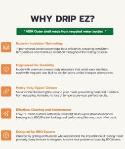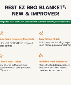 1. MANTÉN TU BBQ JUGOSO Y TIERNO: La Manta para Descanso de Carne Rest EZ BBQ está diseñada para la fase de reposo de tu BBQ permitiendo que la carne reabsorba la humedad resultando en una barbacoa más tierna y jugosa en cada cocción.