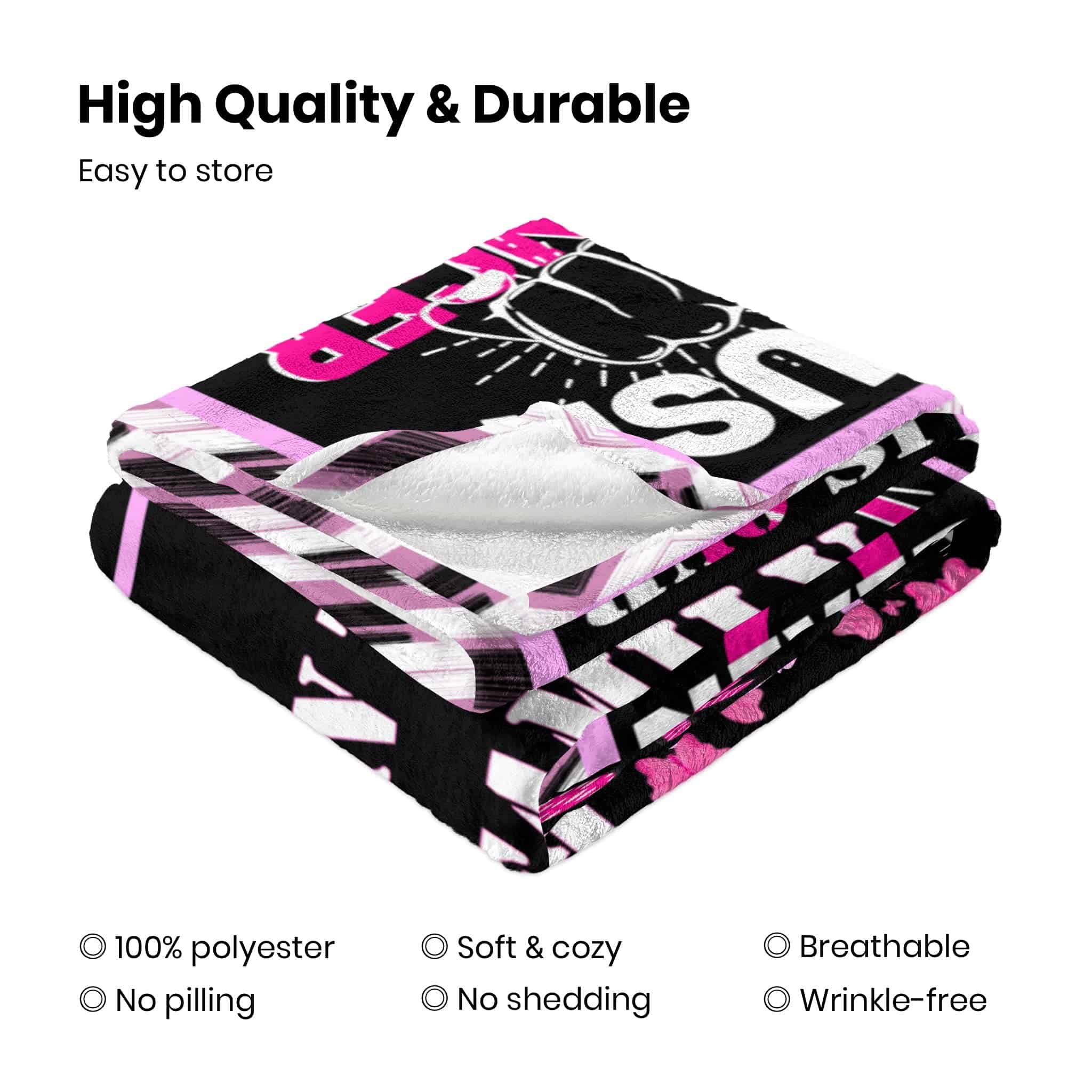 Tenemos dos tamaños de mantas: 60×50 pulgadas y 80×60 pulgadas. Una variedad de tamaños puede satisfacer sus diversas necesidades para que pueda tener una experiencia cómoda en cualquier ocasión de uso. La manta está hecha de tela transpirable, que puede mantener la manta seca y cómoda en todo momento, haciendo que las personas se sientan seguras al cubrirse. El grosor de la manta es moderado y se puede utilizar en todas las estaciones, por lo que tiene una alta practicidad. Es una buena opción como manta para regazo y manta para siestas en el dormitorio, sofá de la sala de estar y oficina. También puedes usarlas como manta exterior para picnics, acampadas, cines, conciertos, eventos deportivos o relajarte en la playa con familia y amigos. La manta está hecha de franela, que es muy suave y ligera y está hecha de material amigable con la piel, lo que garantiza la seguridad y falta de alergias de tu familia y mascotas. El diseño en la manta está impreso con tinta de alta calidad que no se desvanecerá ni se pelará. Se puede lavar en la lavadora. No se encoge fácilmente ni se desvanece.