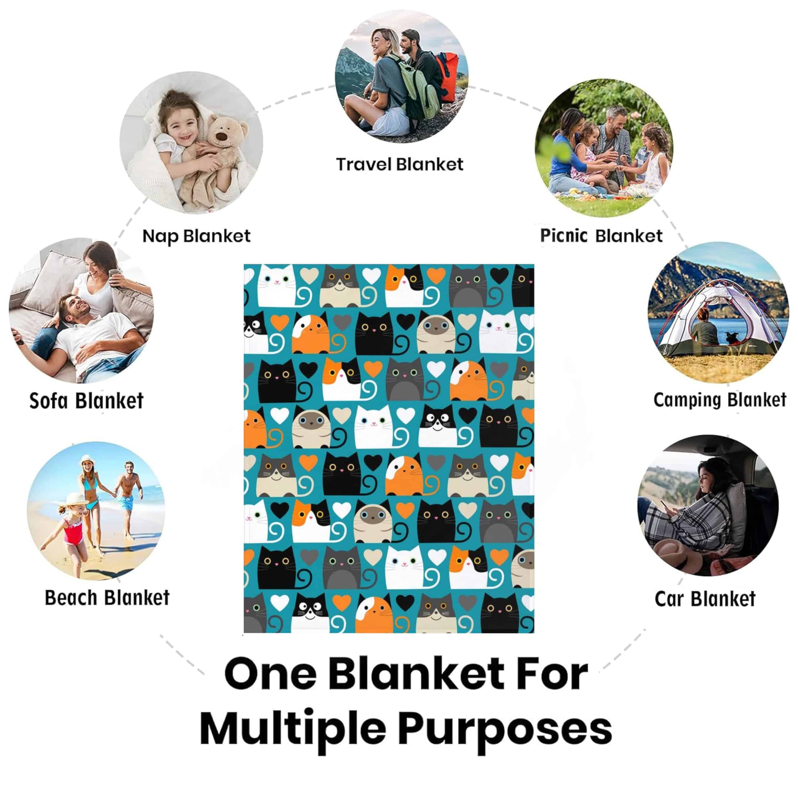 3. Amplia gama de usos: Esta manta linda es adecuada para muchas ocasiones, puedes usarla para ver la televisión, leer, trabajar, dormir la siesta, viajar, acampar, etc. Una manta será tu mejor compañera, siempre te dará una cálida compañía.