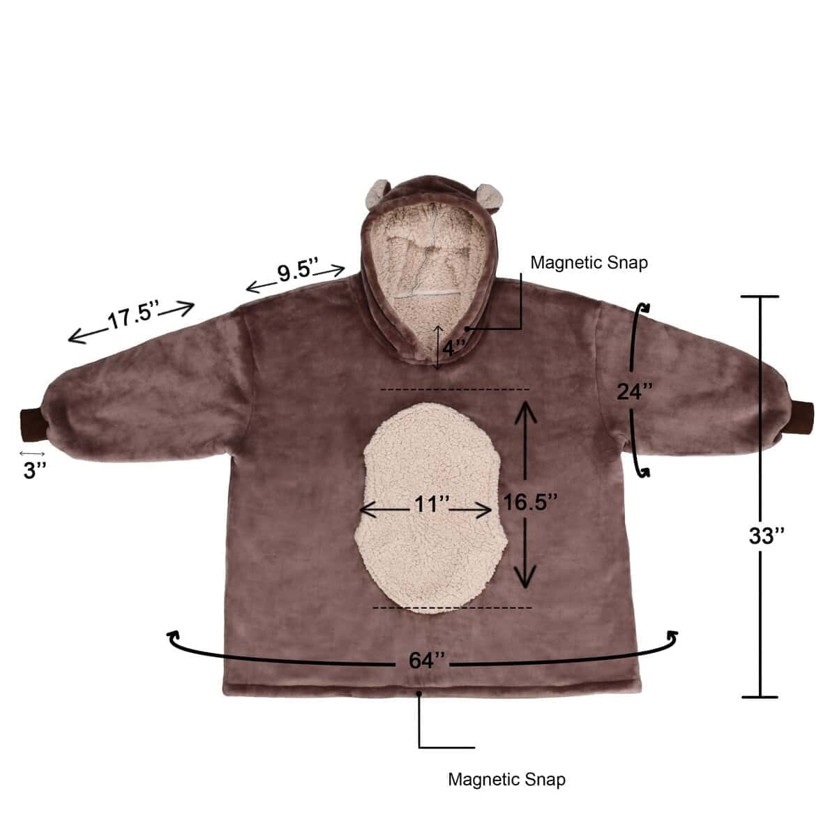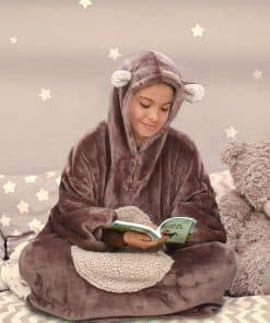 5. Talla única para todos: Esta sudadera cobija Sherpa viene en una sola talla, pero es adecuada para la mayoría de los niños. Nuestra cobija grande es espaciosa y larga, pero no arrastra en el suelo como la mayoría de las cobijas. Es perfecta para usarla en el sofá o en movimiento, convirtiéndola en el mejor accesorio para una noche fría.