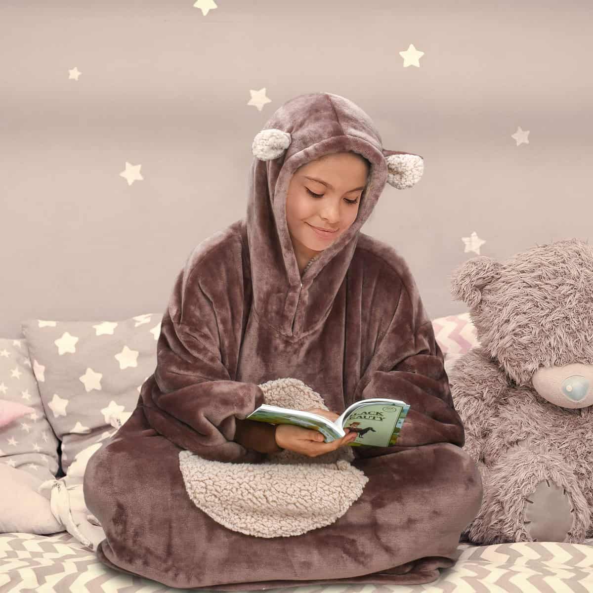1. A todos los niños les encanta – Esta sudadera con capucha cobija es muy espaciosa, los niños pueden meter sus brazos y piernas en el suave y esponjoso Sherpa mientras miran TV, juegan videojuegos, en eventos deportivos, acampando, leyendo u otras actividades al aire libre. Incluso en el frío invierno, usar nuestra cobija con capucha Sherpa permite a los niños desarrollar su naturaleza al aire libre, convirtiéndola en el mejor regalo para Navidad.
