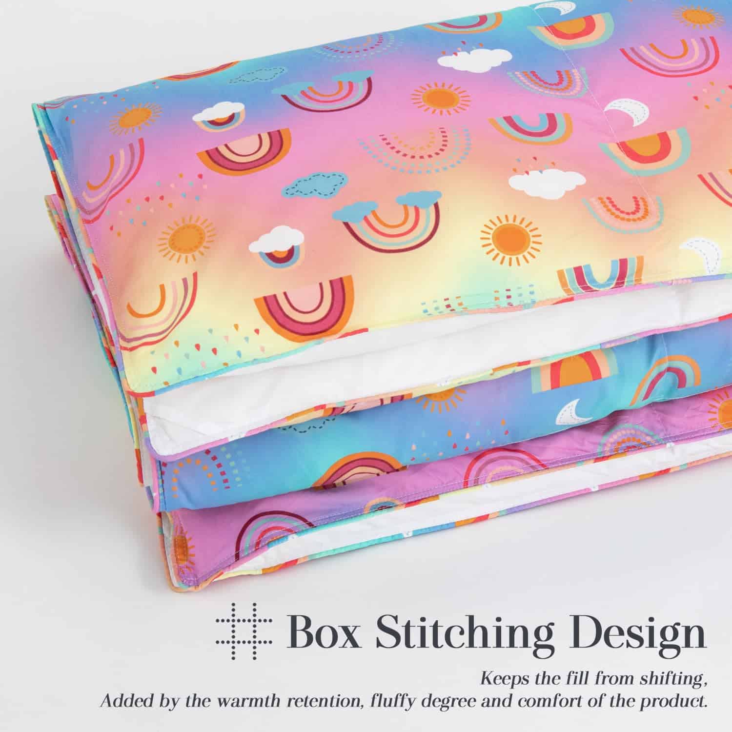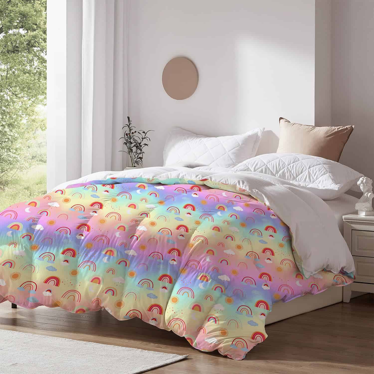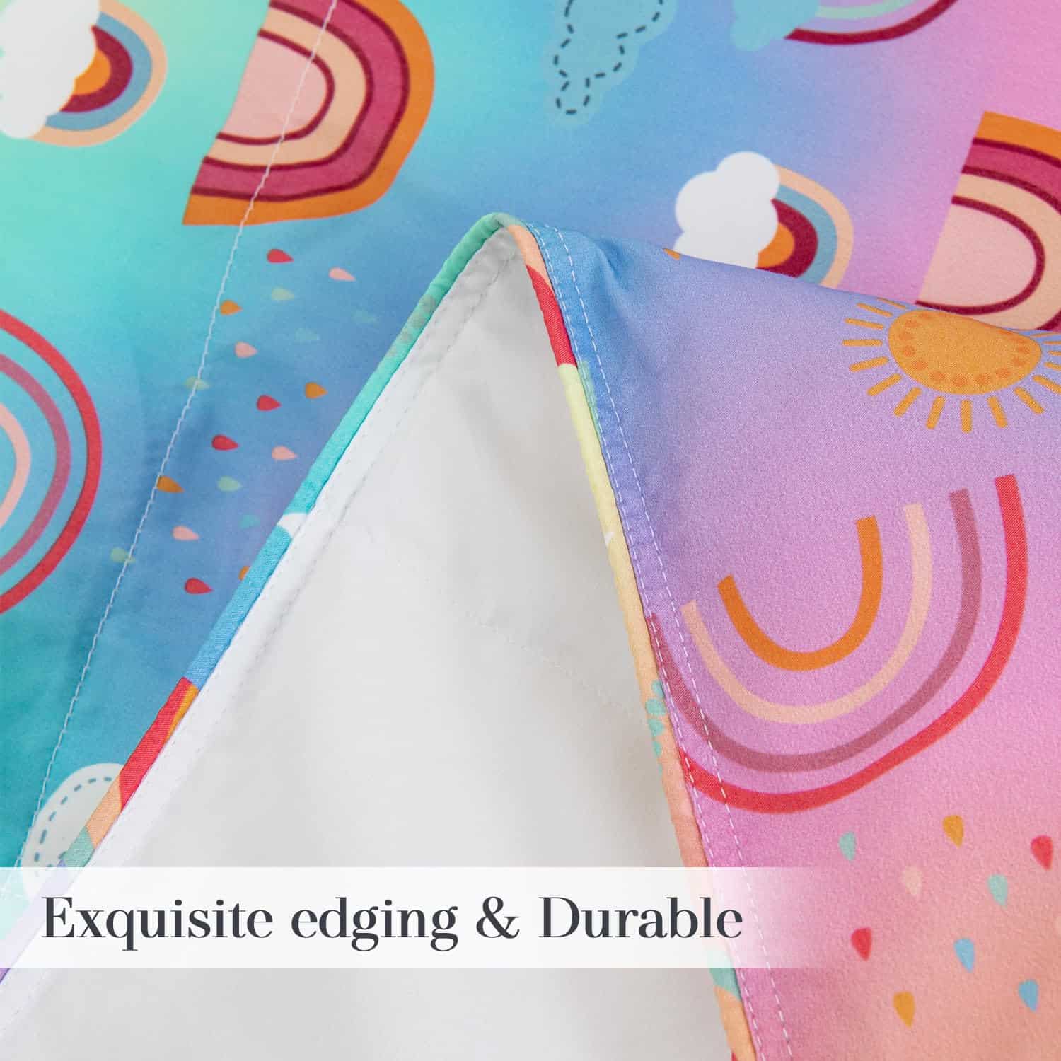 1. Materiales de calidad Nuestras mantas están hechas de tela de manta de plumas 100% que es suave, cómoda, duradera y ligera. La cubierta de la manta edredón es ligera y transpirable con una tela transpirable que protege la piel delicada de los niños. Proporciona la cantidad justa de comodidad para una amplia variedad de durmientes. 2. Diseño único Manta edredón suave impresa, con animales o escenarios, infunde más vitalidad en las habitaciones de los niños, agrega una atmósfera pacífica, mejora el sueño de los niños y brinda el descanso más tranquilo. 3. Disponibilidad completa Las mantas de plumas amigables con la piel y cómodas proporcionan una utilidad para todas las estaciones. Colocarla sobre un sofá o la cama de un niño proporciona el equilibrio ideal entre peso y calidez. Ya sea en casa, viajando, acampando, o en cualquier otro lugar, es perfecta para acurrucarse juntos. 4. EXPERIENCIA ACOGEDORA Acuéstese en este acogedor juego de ropa de cama y disfrute de un sueño cómodo y relajante. Las telas suaves y transpirables garantizan una noche de confort y sueño reparador. Este juego de ropa de cama es adecuado para todas las estaciones y es perfecto como regalo para niñas, amigos y familiares en Navidad, Halloween, Año Nuevo, cumpleaños y otras fiestas. 5. Cuidado fácil Limpie antes del primer uso, los flotadores caerán después de lavarse. Lavar a máquina o lavar a mano con agua fría, ciclo suave, secar al sol o al aire, secar a baja temperatura; no blanquear, no lavar en seco y enfriar la plancha cuando sea necesario.