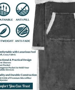 4. BOLSILLO DELANTERO DE SUDADERA: Esta manta de cuerpo tipo bata para hombres y mujeres viene con un bolsillo delantero para mantener los brazos calientes en clima más fresco o para guardar elementos esenciales como teléfono, control remoto de TV, bocadillos y llaves.