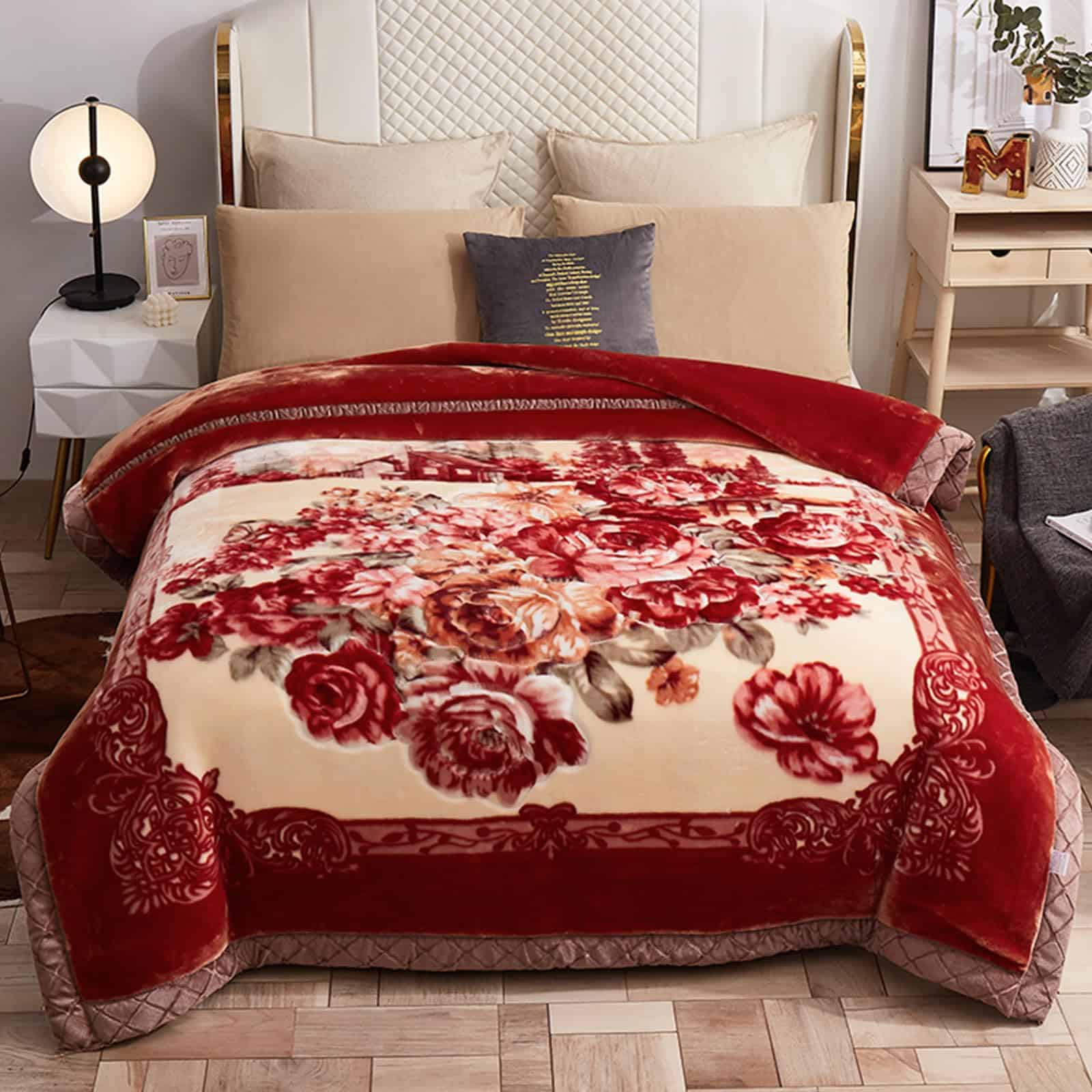 MODUSKYE presenta su manta pesada coreana de alta calidad, perfecta para mantenerte abrigado durante las frías noches de invierno. Confeccionada con material de microfibra de poliéster al 100% con tejido Raschel, esta manta de cama de doble capa ofrece suavidad y durabilidad excepcionales. El diseño floral rosa con borde marrón le da un toque de elegancia y estilo moderno a cualquier decoración de dormitorio. Con dimensiones de 78 x 90 pulgadas y un peso de 7,7 libras, esta manta ofrece calor excepcional y es perfecta para usar en el sofá, la cama o como un elegante cubrecama. Además, es fácil de cuidar, ya que es lavable a máquina. ¡Haz de esta manta MODUSKYE el regalo perfecto para tus amigos, familiares o seres queridos en ocasiones especiales!
