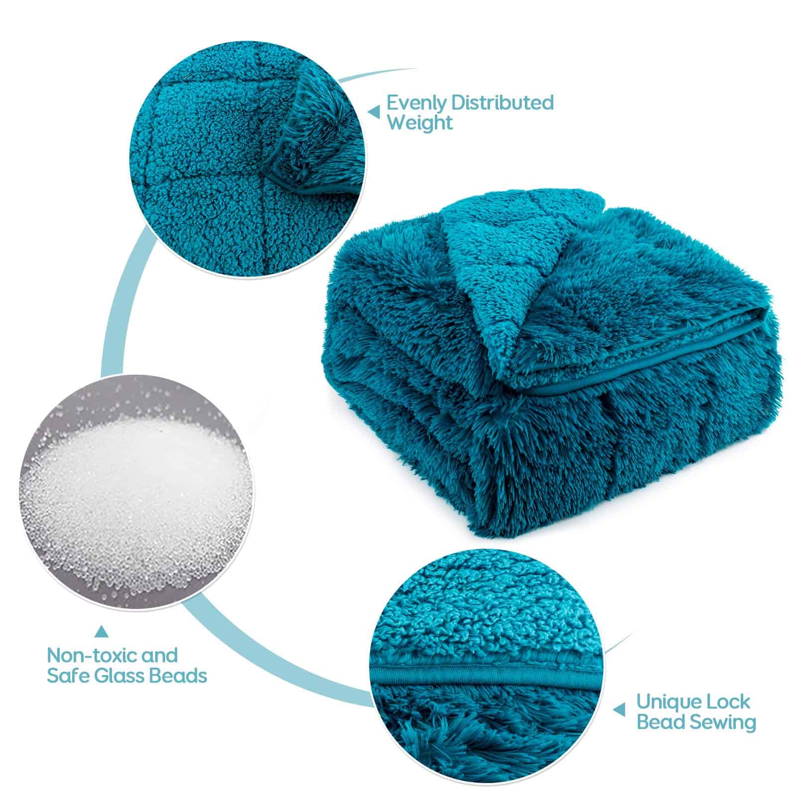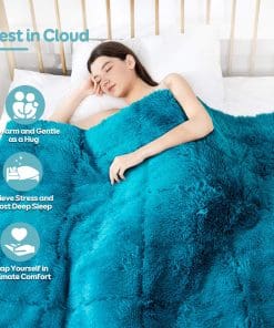 Manta Pesada de Felpa de Algodón Azul 20lbs, Reversible de