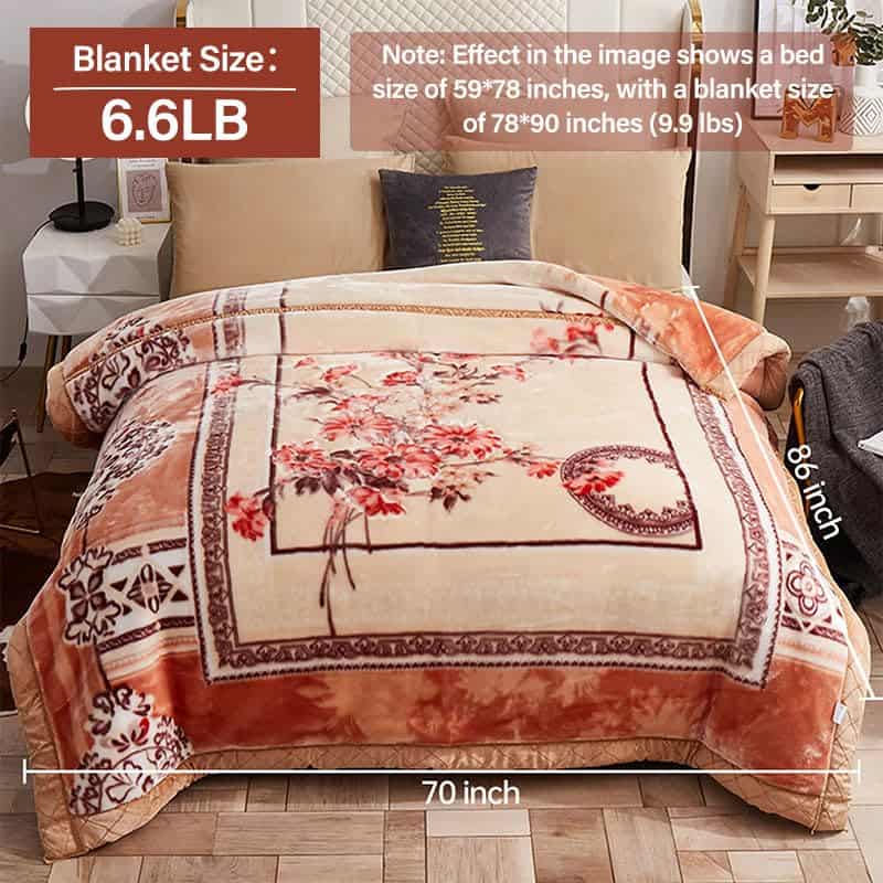 1. Calidad Premium Fabricada en material 100% poliéster de microfibra con tejido Raschel, capa doble para suavidad y durabilidad máximas. 2. Ultra Cálida Manta de cama de 70 * 86 pulgadas (6.6LB) gruesa y pesada que proporciona una calidez excepcional, perfecta para noches frías de invierno. 3. Diseño Elegante La manta floral rosa con borde marrón añade un toque de elegancia y estilo moderno a cualquier decoración de dormitorio. 4. Uso Versátil y Cuidado Fácil Ideal para acurrucarse en el sofá, agregar calor a tu cama o como una elegante manta de sofá. Y esta manta de invierno es lavable a máquina y fácil de mantener. 5. Regalo Perfecto Un regalo reflexivo y lujoso para amigos, familiares o seres queridos en ocasiones especiales.
