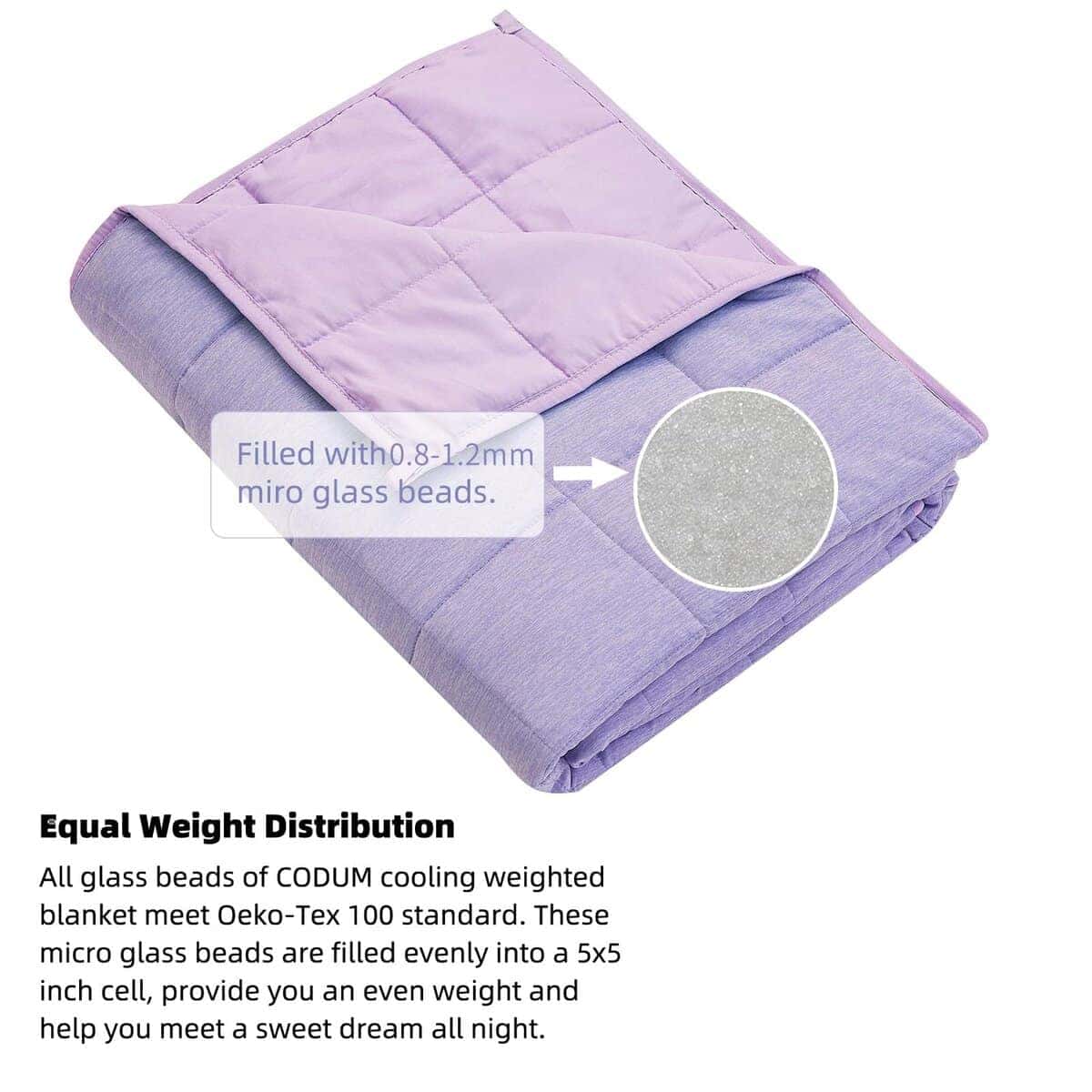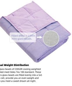 La manta ponderada CODUM de 15 libras tamaño queen en color morado ofrece un diseño innovador que combina el control de temperatura y la promoción del sueño para una experiencia de descanso excepcional. Confeccionada con un tejido de muselina fresco de alta calidad de 220 g / m² y un material de tela cepillada de alta densidad, esta manta ponderada está diseñada para adaptarse a todas las estaciones. La manta viene en tamaño queen de 60»x80» y 15 libras, que se recomienda para adultos que buscan un sueño tranquilo y reparador. Con un diseño de 7 capas y cuentas de vidrio premium de 8-12 mm en una cuadrícula de 5 5 pulgadas, esta manta garantiza una presión uniforme y una sensación de sueño cómoda. Ideal como regalo sorpresa para ocasiones especiales, la manta ponderada CODUM es la elección perfecta para disfrutar de momentos felices en familia o con amigos. Nuestro compromiso es brindar productos de alta calidad y un servicio al cliente excepcional para garantizar tu satisfacción en todo momento.
