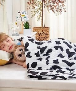 Las mantas ponderadas son una excelente opción para quienes buscan mejorar su calidad de sueño y aliviar la ansiedad. La manta ponderada Yescool de 10 libras cuenta con un encantador estampado de vaca en negro y blanco que añade un toque divertido a cualquier habitación. Con dimensiones de 40″x60″, esta manta es ideal para personas que pesan entre 80 y 110 libras.
