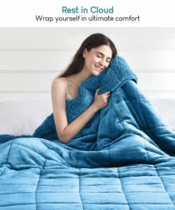 Manta ponderada de 15 libras para cama queen en un elegante color azul pizarra que te brinda la sensación de vivir en las nubes. Con un diseño de 220 GSM de franela suave en un lado y 220 GSM de Sherpa esponjosa en el otro, esta manta te ofrece una suavidad de lujo mientras descansas, miras televisión, tomas una siesta o disfrutas de actividades al aire libre. Además de ser muy cómoda, esta manta ponderada también mejora la calidad de tu sueño al abrazarte suavemente y relajarte. Deja de dar vueltas en la cama toda la noche y comienza a disfrutar de un sueño natural y reparador que te mereces. La manta de franela de Sherpa es duradera y fácil de mantener, con una resistencia increíble a la decoloración y las manchas, por lo que se mantendrá como nueva incluso después de varios años de uso. Simplemente límpiala con un paño húmedo o lávala a máquina de forma comercial si se contamina. Se recomienda colgarla para secar o secarla en secadora a fuego lento si es necesario. Sin duda, esta manta es un regalo perfecto para tu familia y amigos. La artesanía de esta manta ponderada es líder en la industria, con un relleno de cuentas de cerámica seguras y naturales en un diseño de 7 capas. Las cuentas están envueltas con una capa de tela adicional y fibras de poliéster sin pegamento, lo que garantiza una distribución uniforme y segura en los compartimentos más pequeños, evitando cualquier fuga o ruido. Recuerda elegir con sabiduría el peso de tu manta ponderada, que debería ser entre el 8% y el 10% de tu peso corporal. Puede tomar de 2 a 7 días acostumbrarse al peso, así que comienza con un peso más ligero según tu preferencia. Diseñadas para cubrir solo tu cuerpo, las mantas ponderadas están dimensionadas para encajar perfectamente en el colchón y no colgar de la cama.