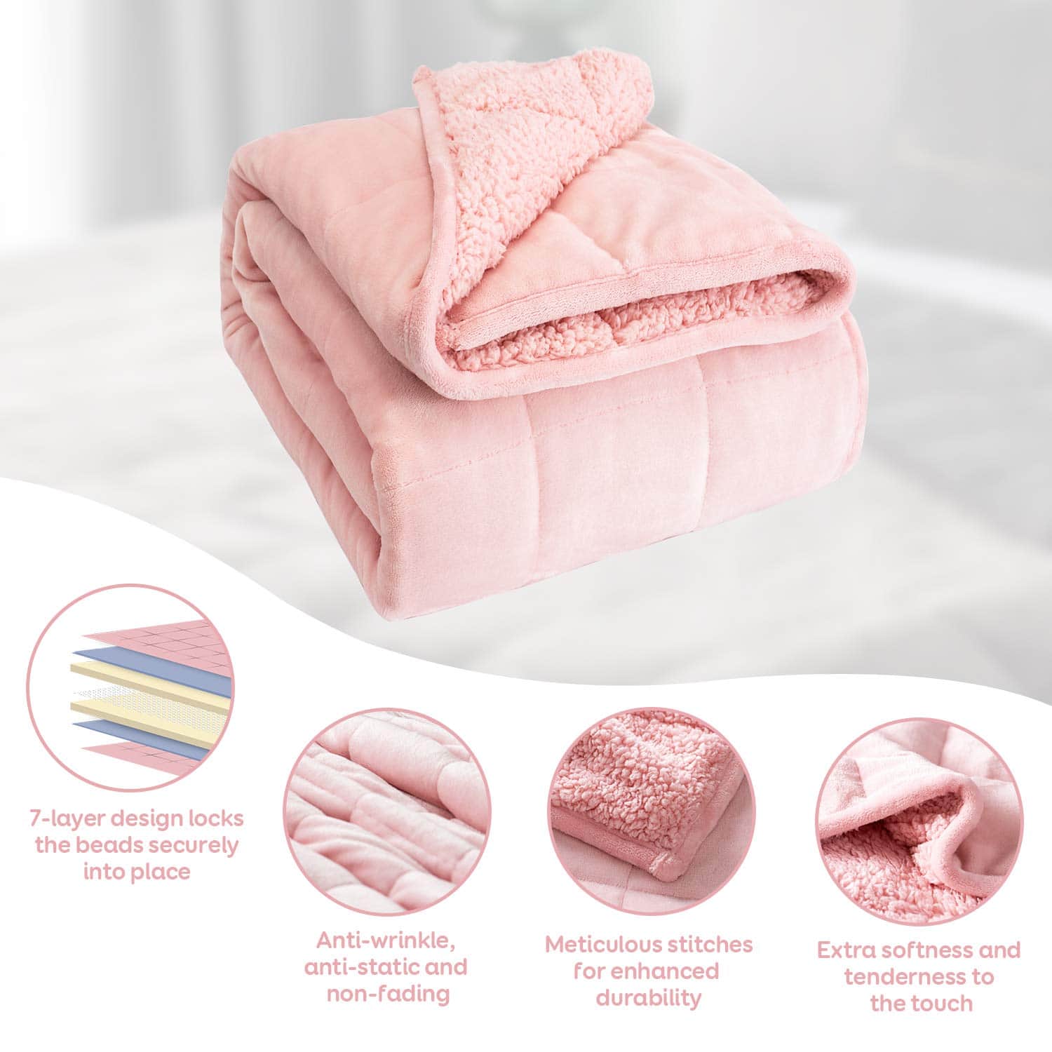 Manta ponderada de Cottonblue 20 lbs 60×80 pulgadas, rosa –