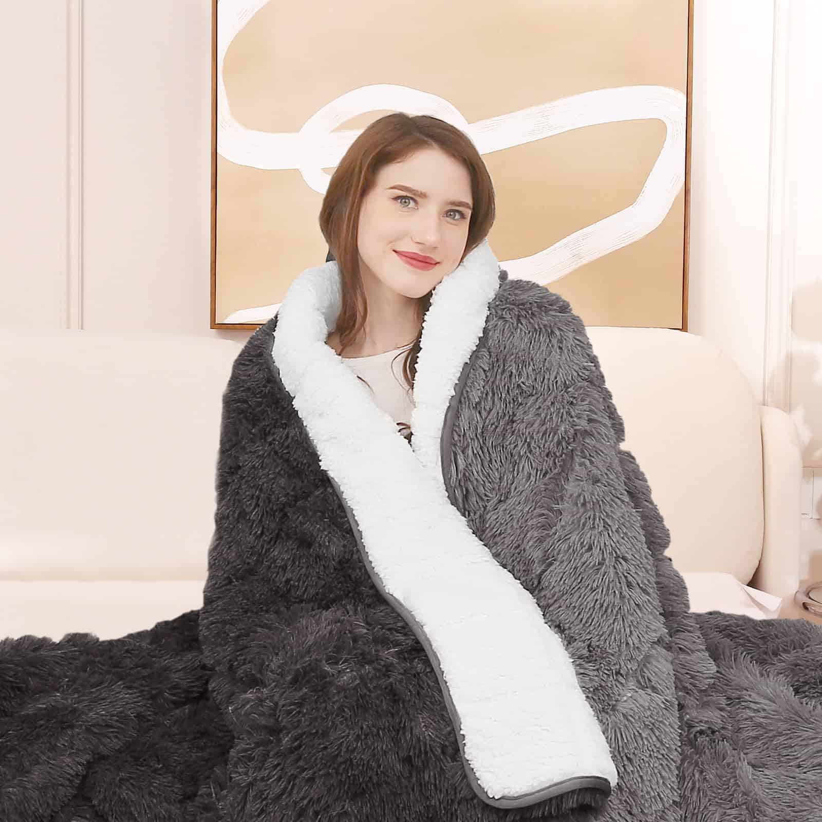 Experimenta la comodidad y calidez con la manta ponderada de piel sintética yescool. Con un suave acabado esponjoso, esta manta de felpa gris es perfecta para acurrucarse en el sofá o la cama. Pesando 20 libras, es ideal para adultos que buscan una sensación de abrazo reconfortante. ¡Consiente a tu cuerpo con esta manta acogedora que te hará dormir profundamente toda la noche!