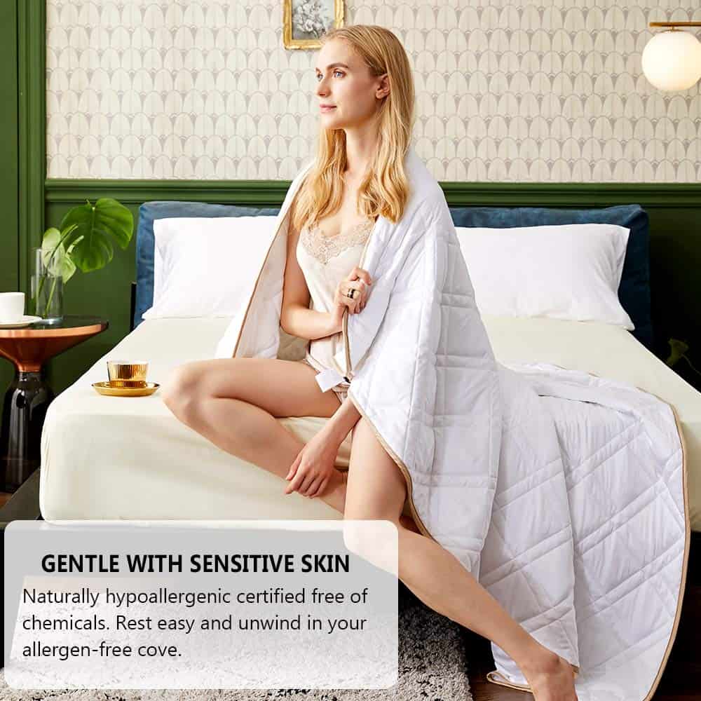 Disfrute de un sueño profundo y reparador con la manta ponderada Dornroscn. Con un peso de 20 libras y un tamaño de 88″x104″, esta manta está diseñada para adaptarse a camas king o de tamaño extragrande. El interior está relleno de perlas de vidrio premium, proporcionando una sensación de tranquilidad y comodidad. La funda blanca agrega un toque de elegancia a cualquier habitación. ¡No espere más para experimentar el lujo del descanso que merece!