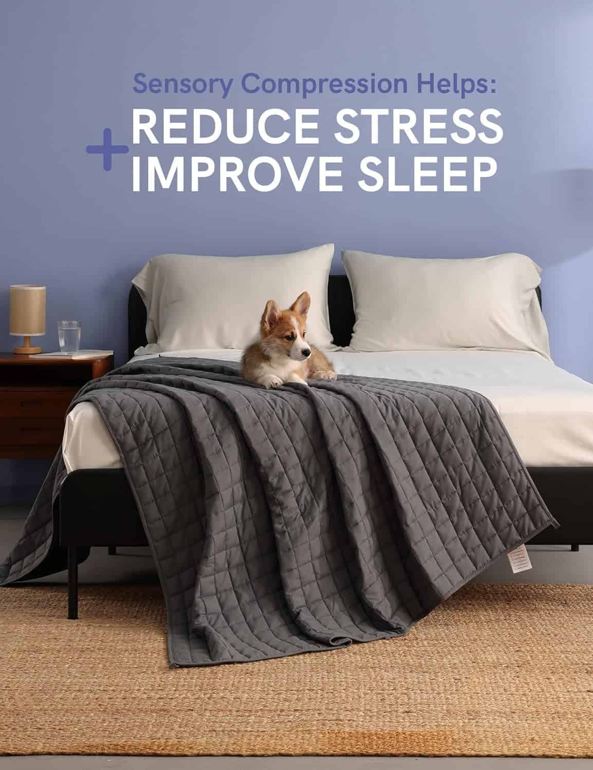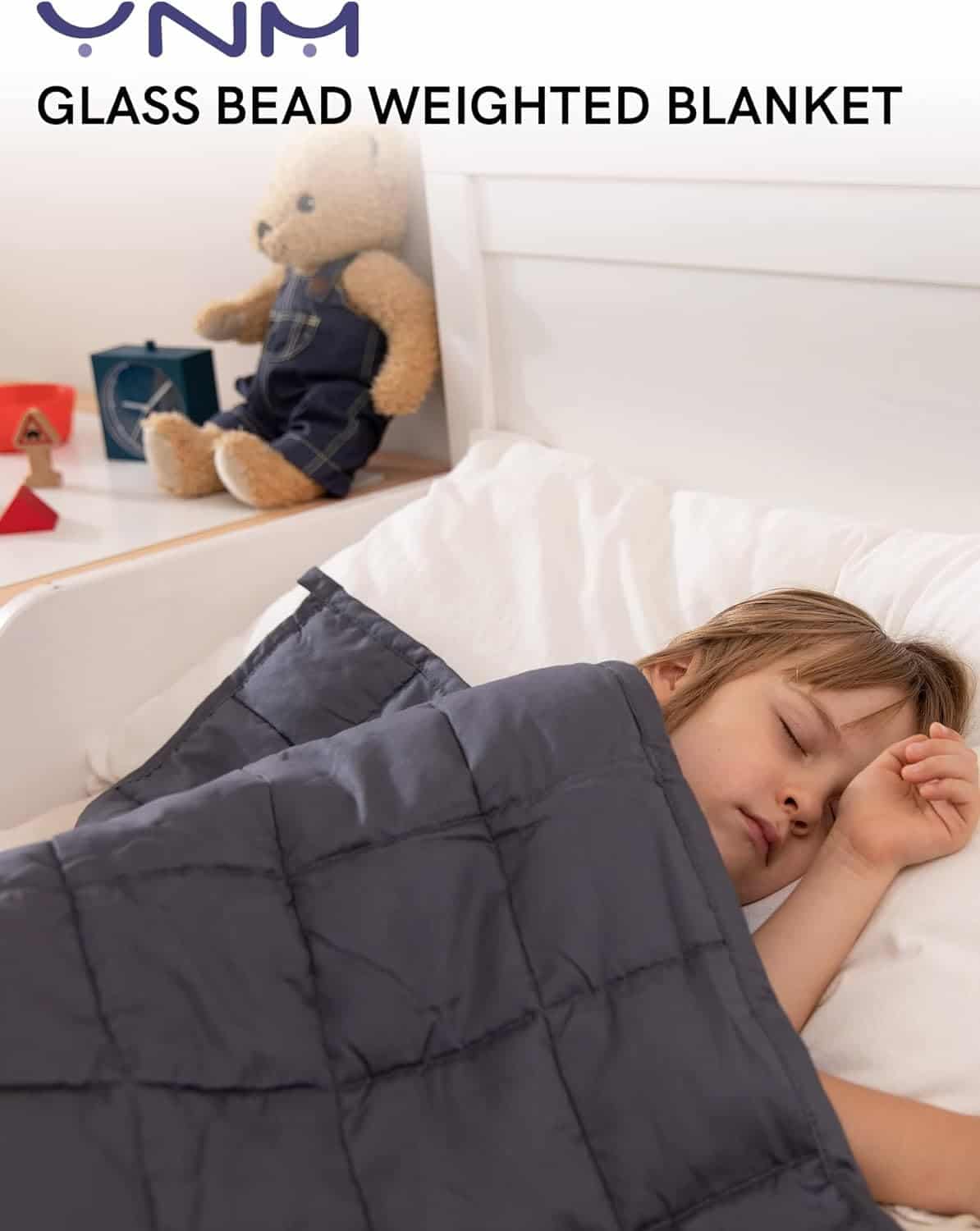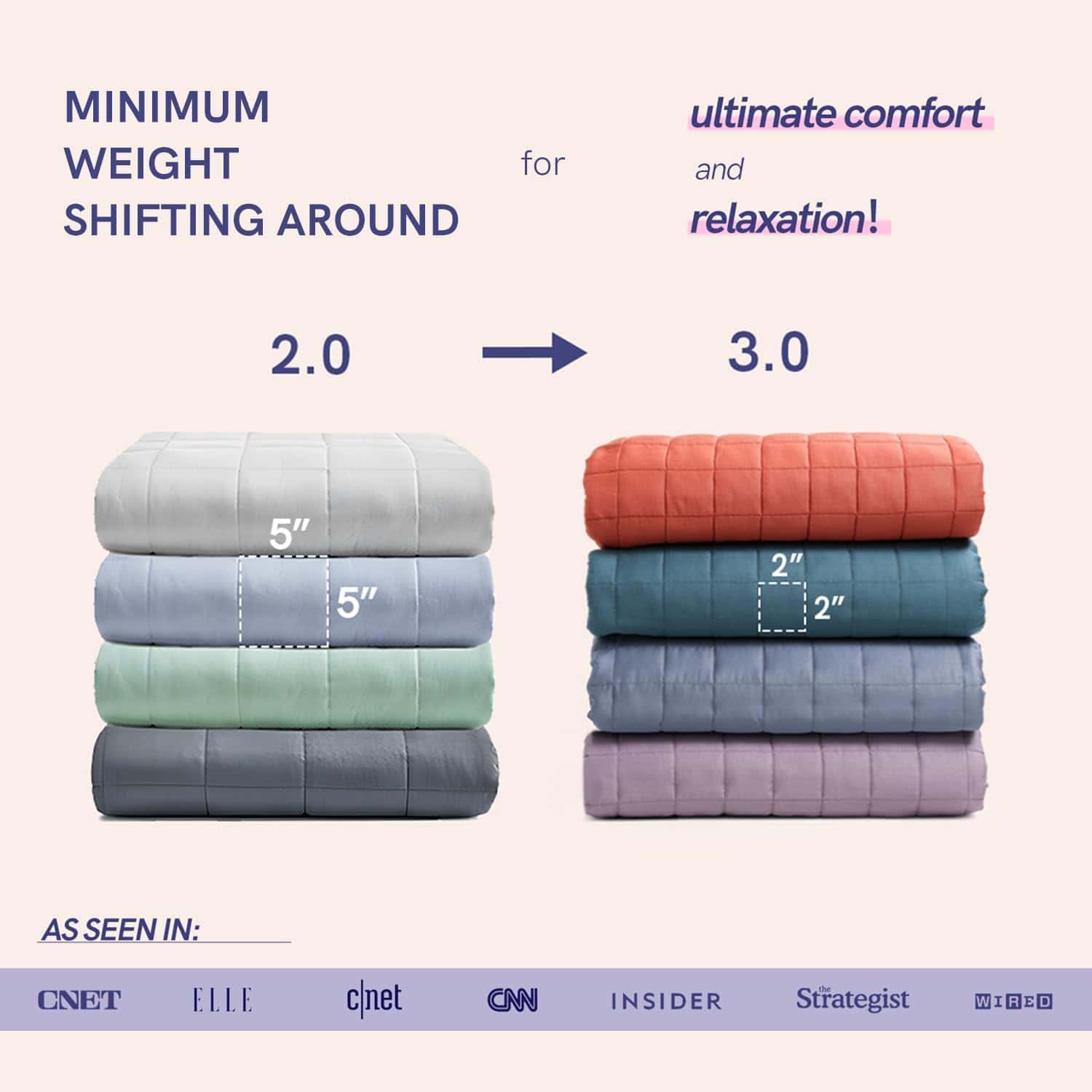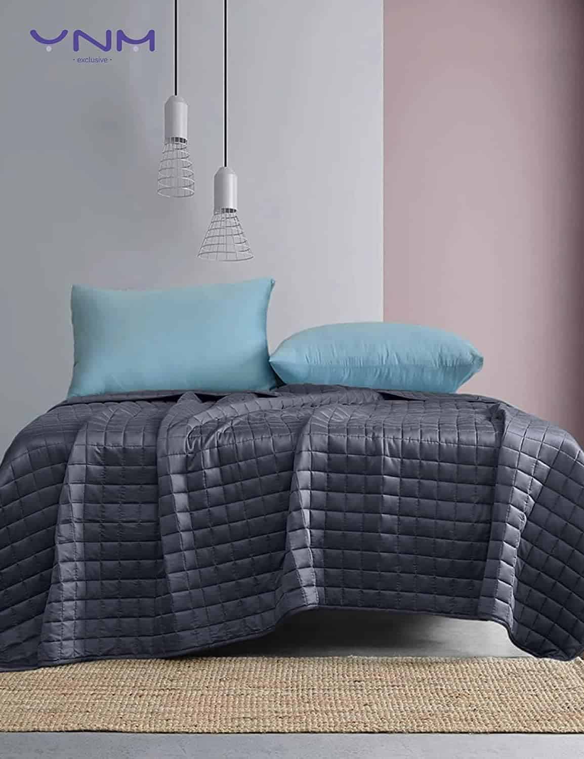 La manta ponderada YnM es una excelente opción para calmar el cuerpo en la noche y garantizar un buen sueño. Cuenta con un diseño innovador que incluye más cuentas de vidrio y menos relleno de fibra para una regulación mejorada de la temperatura. Además, el método de costura tridimensional con bloqueo de cuentas evita la fuga de cuentas. Tiene la mejor costura (0.25 mm por puntada) para evitar el movimiento de peso entre los compartimentos. Además, cuenta con 16 lazos resistentes para asegurar la funda nórdica (disponible por separado) y evitar el deslizamiento.
