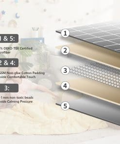 La manta ponderada L’AGRATY es la solución perfecta para mejorar la calidad de tu sueño y aliviar el estrés. Está fabricada con materiales de alta calidad que ofrecen una sensación de frescura en verano y un calor transpirable en invierno. Su relleno de perlas de vidrio no tóxicas e hipoalergénicas de 0.8-1 mm proporciona una distribución uniforme del peso para una sensación reconfortante. Además, la tecnología de posicionamiento preciso garantiza que las perlas permanezcan en su lugar, evitando desplazamientos. Esta manta ponderada es más pequeña que una manta convencional para concentrar el peso en el cuerpo, por lo que no se extenderá por los bordes de tu cama. La manta ponderada L’AGRATY es perfecta para dormir, leer, relajarte o meditar. Cuidarla es sencillo, ya que se recomienda lavarla a mano y secarla al aire. Recuerda que la manta ponderada no se recomienda para menores de 3 años ni para mujeres embarazadas, y no debes cubrirte la cara con ella. ¡Disfruta de una experiencia de compra placentera!