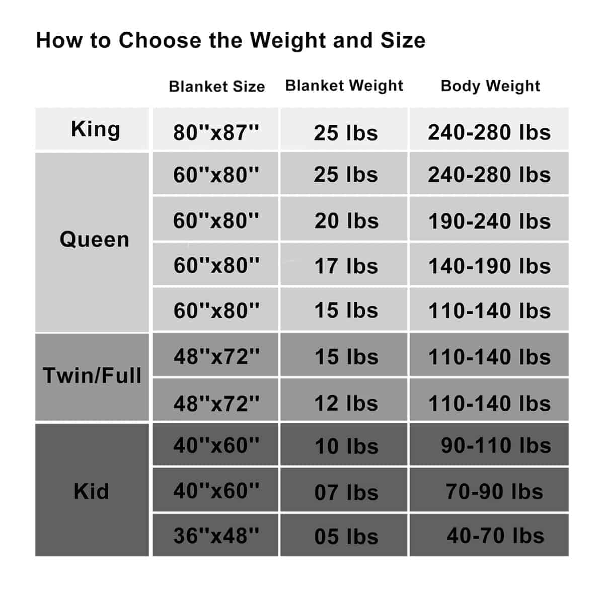 2. Tamaño de Peso Recomendado: Por favor, elija el 7%-12% de su peso corporal que le ayudaría a dormir mejor. Recomendamos 48»x72» para cama individual, 60»x80» para cama queen. Esta manta pesada se puede utilizar mientras duerme, lee, se relaja o medita.