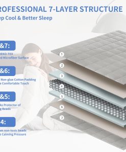 La manta ponderada L’AGRATY es la solución perfecta para mejorar tu calidad de sueño y brindarte comodidad durante todo el año. Fabricada con materiales de primera calidad, esta manta está diseñada para proporcionar una sensación fresca en verano y un calor transpirable en invierno. Las perlas de vidrio hipoalergénicas no tóxicas de 0.8-1 mm garantizan una distribución uniforme del peso en toda la manta para una experiencia de sueño relajante.