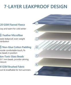 Manta Ponderada L’AGRATY 7lb para Adultos – Amplio Rango de Utilidad, ¡Perfecta para Primeros Usuarios de Mantas Ponderadas! Nuestra manta ponderada es pequeña (29×24 pulgadas) y solo 7 libras, por lo que tanto adultos como personas mayores pueden usarla fácilmente. Manta ponderada 2 en 1 para el calor y el enfriamiento: hecha de materiales de doble cara diferentes, un lado es terciopelo de cristal, suave y amigable con la piel. El otro lado está hecho de tela cepillada, que es fresca y transpirable para una comodidad definitiva en todas las estaciones. La manta ponderada pequeña se ajusta perfectamente a partes específicas del cuerpo, proporcionando un efecto de presión más dirigido para una experiencia de relajación más profunda. Puedes usarla en tus piernas como manta de rodilla cuando tengas molestias en las piernas, y también puedes colocar nuestra manta ponderada pequeña sobre tus hombros cuando estés distraído en el trabajo, practicando yoga o meditando, ¡te ayudará a sentirte más relajado! Puedes colocar la manta ponderada sobre tu estómago, ya sea que estés durmiendo, tomando una siesta, leyendo, viendo la televisión, ¡puede hacerte sentir abrazado y disfrutar de una experiencia más cómoda! La manta ponderada pequeña y ligera es fácil de llevar contigo, solo puedes enrollarla o doblarla y se adaptará fácilmente a tu mochila o maleta para llevarla contigo. Esta acogedora manta ponderada para regazo es ideal para usar en aviones, así que si sufres de avión, esta manta ponderada de viaje es una excelente opción. Diseño de estructura de 7 capas, la estructura de múltiples capas asegura que las cuentas estén distribuidas de manera uniforme y también evita que las cuentas se filtren. Nuestra suave manta ponderada para regazo tiene un diseño de apariencia único, diseño de colores diferentes, se puede utilizar como accesorios decorativos en el sofá, la cama. Esta manta ponderada pequeña también es perfecta como un regalo atento para tus seres queridos. PRECAUCIONES DE LIMPIEZA: Lavar a mano, Lavar a máquina en frío, Secar a baja temperatura. ¡NO utilizar blanqueadores y planchar! El lavado frecuente a máquina puede dañar la manta ponderada, ¡así que se recomienda más el lavado a mano!