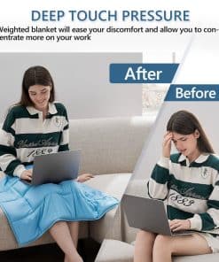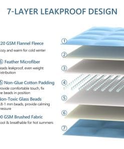 Manta Ponderada L’AGRATY 7lbs para Adultos – Amplio Rango de Utilidad, ¡Perfecta para Usuarios Primerizos de Mantas Ponderadas! 1. Nuestra manta ponderada es pequeña (29×24 pulgadas) y solo pesa 7 libras, por lo que los adultos y las personas mayores pueden usarla fácilmente. Manta ponderada 2 en 1 cálida y fría: hecha de materiales de doble cara diferentes, un lado es terciopelo cristalino, suave y amigable con la piel. El otro lado está hecho de tela cepillada, que es fresca y transpirable para una comodidad máxima en todas las estaciones. 2. La manta ponderada pequeña se adapta perfectamente a partes específicas del cuerpo, proporcionando un efecto de presión más dirigido para una experiencia de relajación más profunda. Puedes usarla en tus piernas como una manta para las rodillas cuando tengas molestias en las piernas y también puedes colocar nuestra manta ponderada pequeña sobre tus hombros cuando estás distraído en el trabajo, practicando yoga o meditando, ¡te ayudará a sentirte más relajado! Puedes poner la manta ponderada sobre tu estómago, ya sea que estés durmiendo, echando la siesta, leyendo, viendo televisión, ¡puede ayudarte a sentirte abrazado y disfrutar de una experiencia más cómoda! 3. La manta ponderada pequeña y ligera es fácil de transportar sobre la marcha, simplemente puedes enrollarla o doblarla y se ajustará fácilmente en tu mochila o maleta para llevarla contigo. Esta acogedora manta lap ponderada es ideal para usar en aviones, por lo que si sufres de ansiedad en aviación, entonces esta manta ponderada de viaje es una excelente elección. 4. Diseño de estructura de 7 capas, la estructura de múltiples capas garantiza que las cuentas estén distribuidas uniformemente y también evita que las cuentas se escapen. Nuestra suave manta ponderada lap tiene un diseño de apariencia único, diseño de colores diferentes, puede usarse como accesorios decorativos para el hogar en el sofá, cama. Esta manta ponderada pequeña también es perfecta como un regalo considerado para tus seres queridos. PRECAUCIONES DE LIMPIEZA: Lavar a mano, lavar a máquina en frío, secar a baja temperatura. ¡NO usar lejía ni planchar! El lavado frecuente a máquina puede dañar la manta ponderada, por lo que se recomienda más lavar a mano.