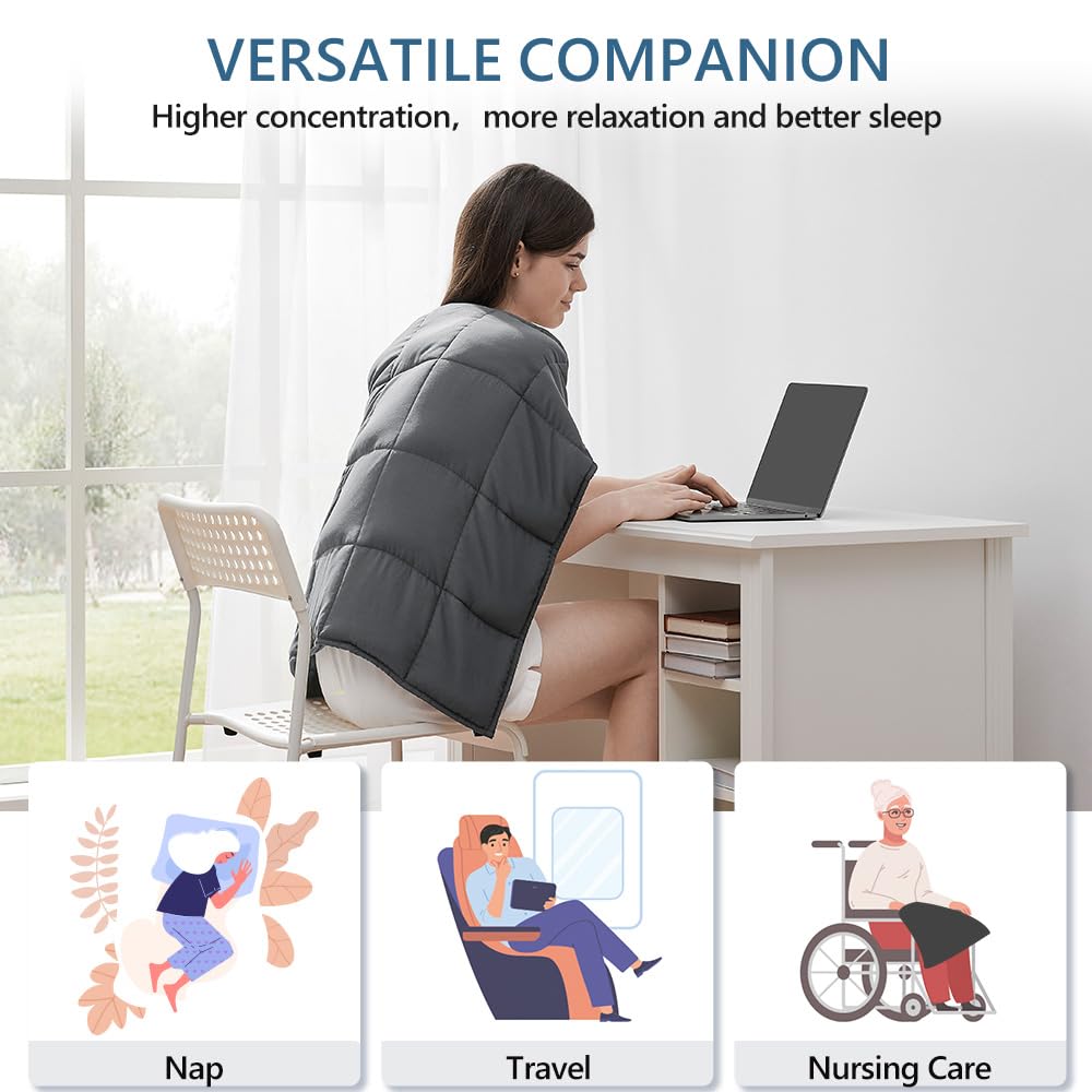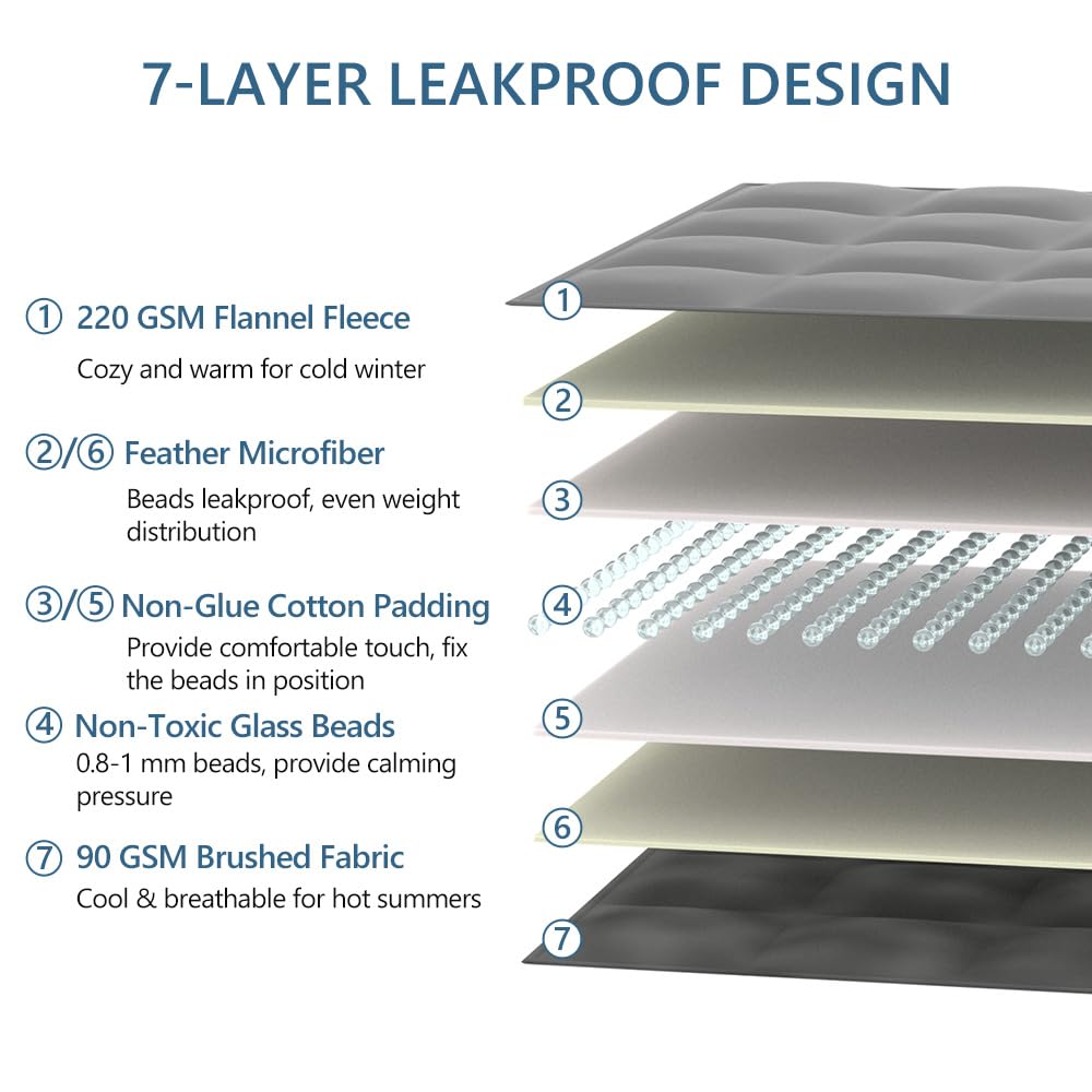 Manta Ponderada L’AGRATY 7lbs para Adultos – Amplio rango de utilidad, ¡Perfecta para Usuarios de Mantas Ponderadas por Primera Vez! 1. Nuestra manta ponderada es pequeña (29×24 pulgadas) y solo pesa 7 libras, por lo que tanto los adultos como los mayores pueden usarla fácilmente. Manta ponderada de 2 en 1 cálida y refrigerante – Hecha de diferentes materiales de doble cara, un lado es de terciopelo cristal, suave y amigable con la piel. El otro lado es de tela cepillada, que es fresca y transpirable para una comodidad máxima en todas las estaciones. 2. La manta ponderada pequeña se ajusta perfectamente a partes específicas del cuerpo, proporcionando un efecto de presión más enfocado para una experiencia de relajación más profunda. Puedes usarla en tus piernas como una manta de rodilla cuando tus piernas estén incómodas y también puedes colocar nuestra manta ponderada pequeña sobre tus hombros cuando estés distraído en el trabajo, practicando yoga o meditando, ¡te ayudará a sentirte más relajado! ¡Puedes colocar la manta ponderada sobre tu estómago, ya sea que estés durmiendo, haciendo una siesta, leyendo, viendo la televisión, puede hacerte sentir abrazado y disfrutar de una experiencia más cómoda! 3. La manta ponderada pequeña y ligera es fácil de llevar contigo, simplemente enróllala o dóblala y cabrá fácilmente en tu mochila o maleta para llevarla contigo. Esta acogedora manta ponderada para regazo es ideal para usar en aviones, por lo que si sufres de avión, esta manta ponderada de viaje es una excelente opción. 4. Diseño de estructura de 7 capas, la estructura de múltiples capas garantiza que las cuentas estén distribuidas de manera uniforme y también evita que las cuentas se filtren. Nuestra suave manta ponderada para regazo tiene un diseño de apariencia única, diseño de color diferente, puede usarse como accesorios decorativos para el hogar en el sofá, la cama. Esta manta ponderada pequeña también es perfecta como un regalo atento para tus seres queridos. PRECAUCIONES DE LIMPIEZA: Lavar a mano, Lavar a máquina en frío, Secar a fuego lento. ¡NO blanquear ni planchar! Lavar frecuentemente en máquina puede dañar la manta ponderada, ¡así que se recomienda más lavarlo a mano!
